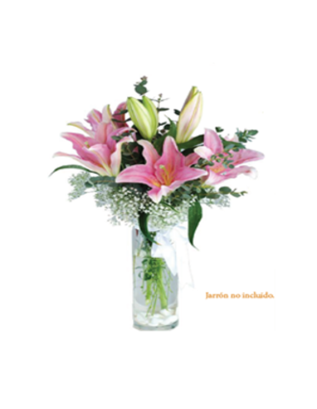 Referencia GMEAFL004Compuesto por: 3 Varas de lilium oriental, paniculata, eucaliptus con celofán y lazo. Jarrón no incluido.