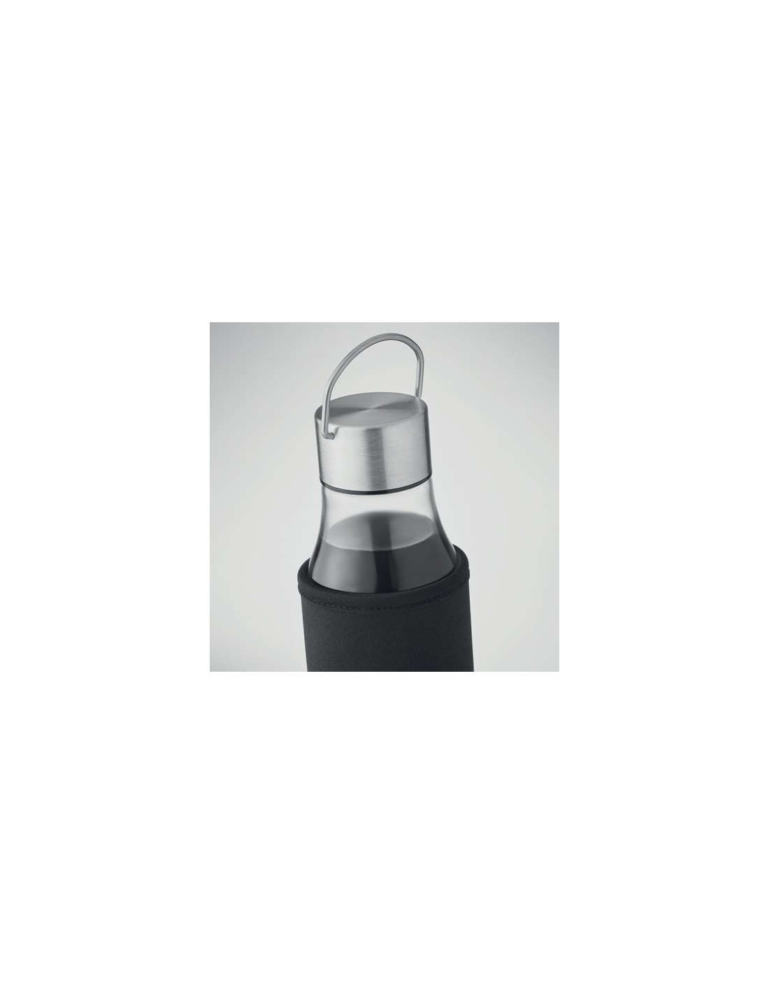Botella de vidrio con tapa y asa de transporte de acero inoxidable. Anti fugas. Capacidad: 500 ml.
