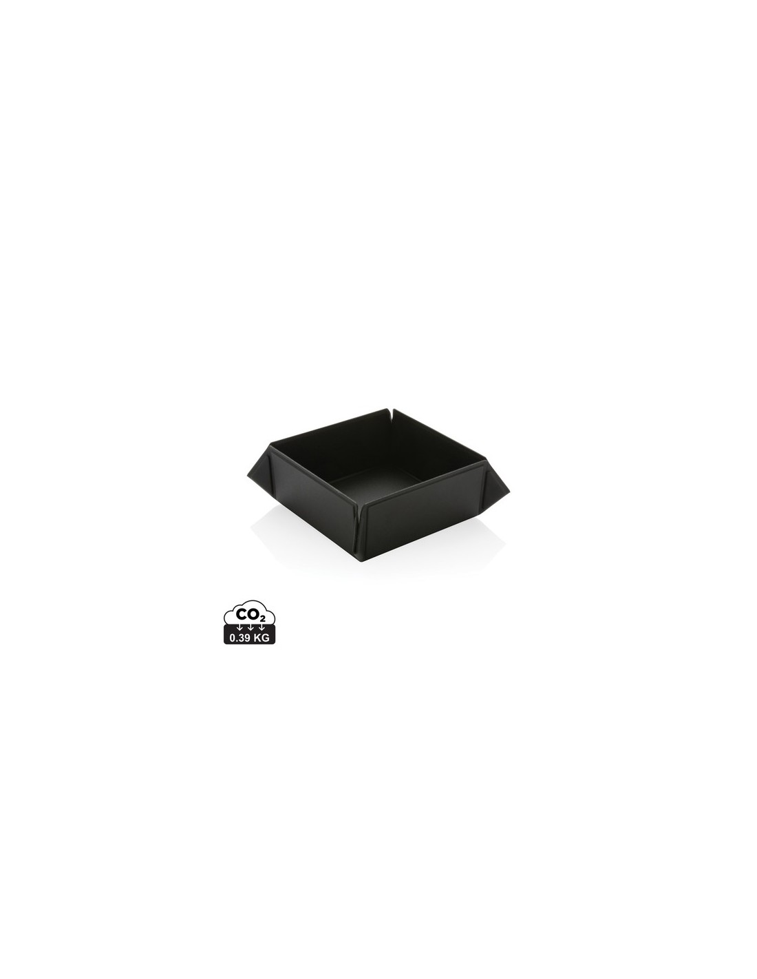Caja de almacenaje plegable e magnética fabricada con PU reciclado certificado RCS. Contenido reciclado total: 21% basado en el peso total del artículo. La certificación RCS garantiza una cadena de suministro completamente certificada de los materiales reciclados. La caja de almacenamiento viene plana en el embalaje y se puede plegar fácilmente en una caja de almacenamiento con los imanes integrados. Perfecto para tu escritorio o tu mesita de noche. Presentado en envase mixto FSC®. Material : PU reciclado Recycled Content Percent : 21 Conforme directiva Cadmio 91/338/EC, Conforme contenido de plomo U.S, Conforme PAHS content in Reach & ZEK 01-4-08, Conforme directiva Phtalate content, Libre de parafinas cloradas de cadena corta y media., certificado de Recycled Claim Standard Packaging : Caja de regalo All print codes : Pad Print,CO2 Engraving 2,Hot Stamping - Print code default : Tampografía - parte lateral arriba - 80 x 20 mm - max color : 5 Social Audits : BSCI Total CO2 emissions : 0,39.