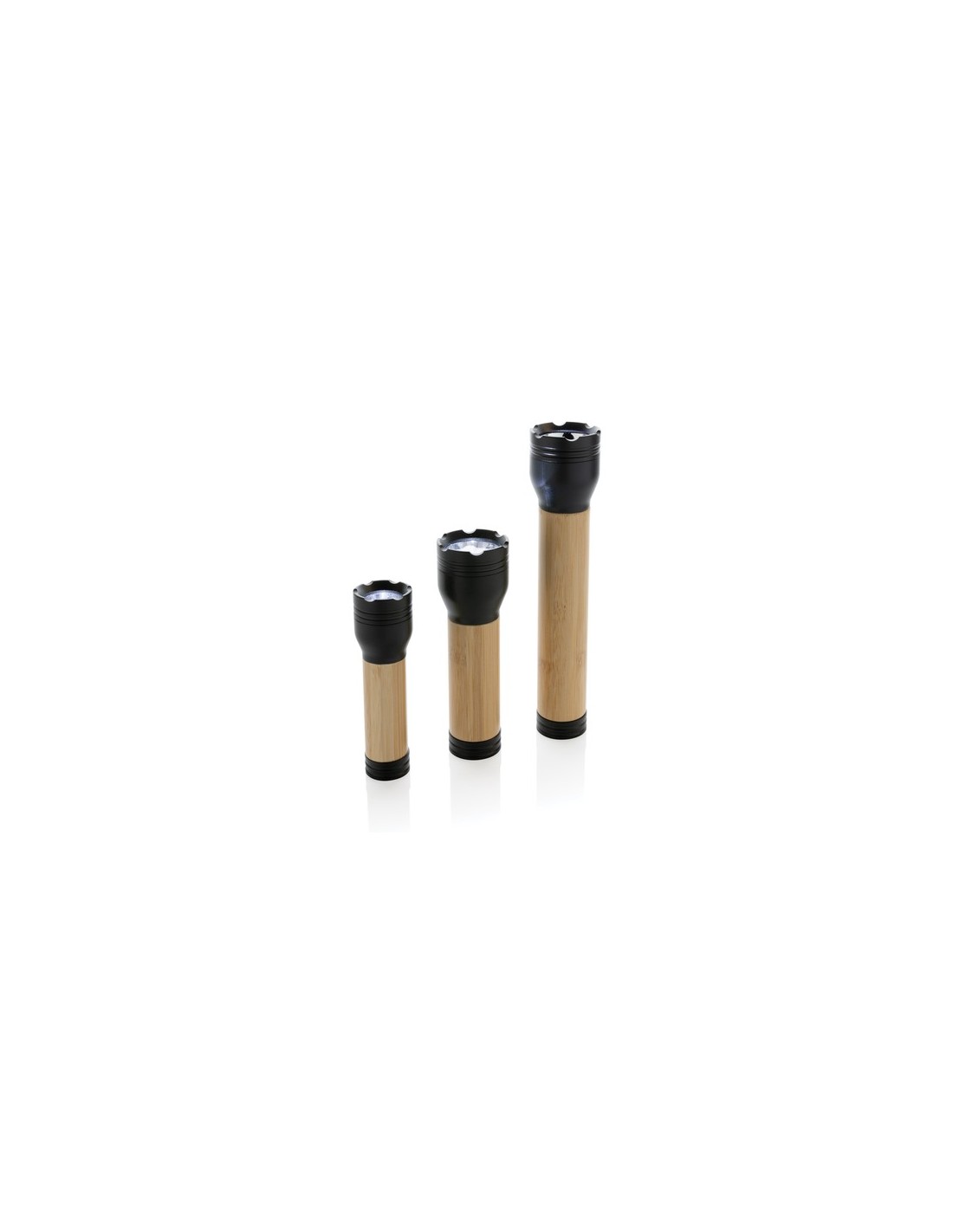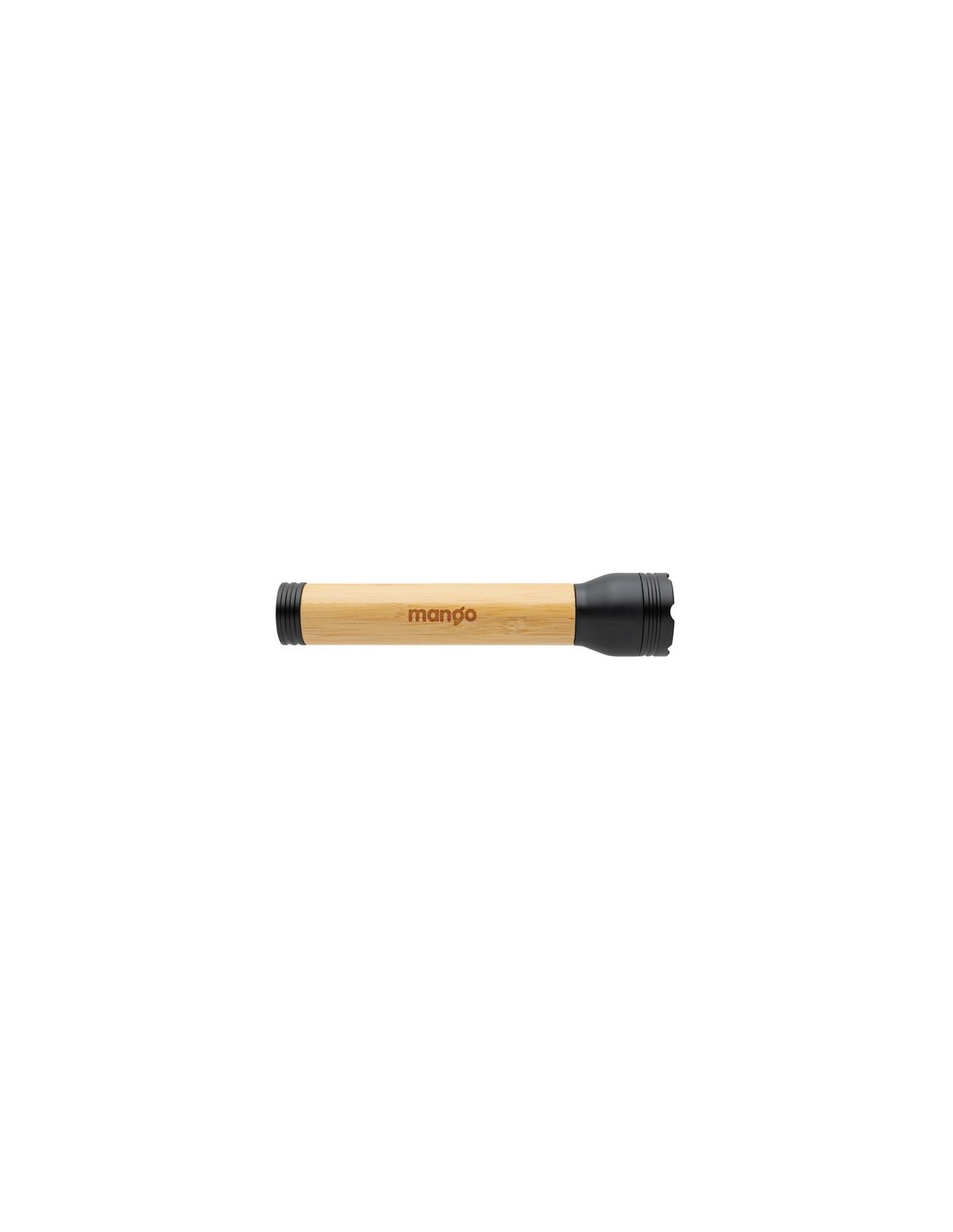 Linterna USB recargable de 5W fabricada con FSC® 100% bambú y ABS reciclado certificado RCS (Recycled Claim Standard). Contenido reciclado total: 19% basado en el peso total del artículo. La certificación RCS garantiza una cadena de suministro completamente certificada de los materiales reciclados. La linterna viene con una batería de litio de grado A de 1800 mah. La linterna puede funcionar hasta 6 horas con una sola carga y recargarse mediante el tipo c en 5 horas. La distancia del haz es de 150 metros y proporciona 300 lúmenes. Con 3 modos (brillante, medio y flash). Incluye cable de carga de TPE reciclado certificado por RCS. Presentado en embalaje kraft mixto FSC®. Artículo y accesorios 100% libres de PVC. Material : ABS reciclado, FSC® bambú Recycled Content Percent : 18 Conforme directiva Electromagnética 2014/30/EU, Conforme directiva de sustancias peligrosas 2011/65/EC & 2015/863, Conforme directiva Formaldahyde EN 14184-1, Conforme PAHS content in Reach & ZEK 01-4-08, Conforme directiva PCP content 1999/51/EC, Conforme directiva Phtalate content, Libre de parafinas cloradas de cadena corta y media., certificado de Recycled Claim Standard, Conforme directiva sistemas de alumbrado de lámparas y seguridad sistemas fotobiológicos EN 62471 WEEE Battery : 1 Li-ion - 18650 - 87 g. Packaging : Caja de regalo All print codes : CO2 Engraving 2,Pad Print - Print code default : Grabado CO2 - linterna - 100 x 15 mm - max color : 1 Social Audits : SMETA Total CO2 emissions : 1,95.