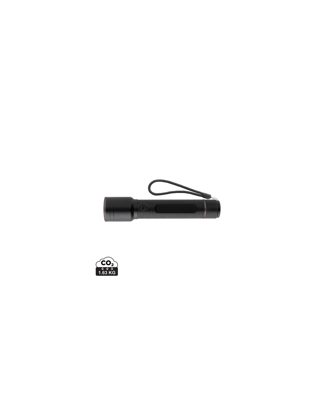 Funcionalidad, rendimiento y diseño se unen en esta linterna recargable de 10W fabricada con aluminio reciclado certificado RCS. Contenido reciclado total: 20% basado en el peso total del artículo. La certificación RCS garantiza una cadena de suministro completamente certificada de los materiales reciclados. Debido a su clasificación IP4, es resistente a exteriores. La potente bombilla crea hasta 800 lúmenes y un haz que alcanza hasta 500 metros. Batería recargable de grado A. Simplemente recarga a través de su toma USB y el cable tipo C reciclado certificado por RCS. La bombilla de alta calidad viene con 5 modos, incluida la función SOS. La batería de 2000 mah permite un uso de hasta 8 horas con una sola carga y también permite cargar tus dispositivos móviles vía tipo C. El aluminio no pierde sus características en el proceso de reciclaje y puede reciclarse infinitamente. Artículo y accesorios 100% libres de PVC. Presentado en embalaje mixto FSC. Entrada Tipo-C 5V, 1A; Salida 5V. Material : Aleación de aluminio reciclada, PC Recycled Content Percent : 78 Conforme directiva Electromagnética 2014/30/EU, Conforme directiva de sustancias peligrosas 2011/65/EC & 2015/863, Conforme PAHS content in Reach & ZEK 01-4-08, Conforme directiva Phtalate content, Libre de parafinas cloradas de cadena corta y media., Conforme directiva sistemas de alumbrado de lámparas y seguridad sistemas fotobiológicos EN 62471 WEEE Battery : 1 Li-ion - 18650 - 40 g. Packaging : Caja de regalo All print codes : Laser Engraving 2,Pad Print,Doming - Print code default : Grabado a láser - linterna - 40 x 9 mm - max color : 1 Social Audits : BSCI Total CO2 emissions : 1,63.
