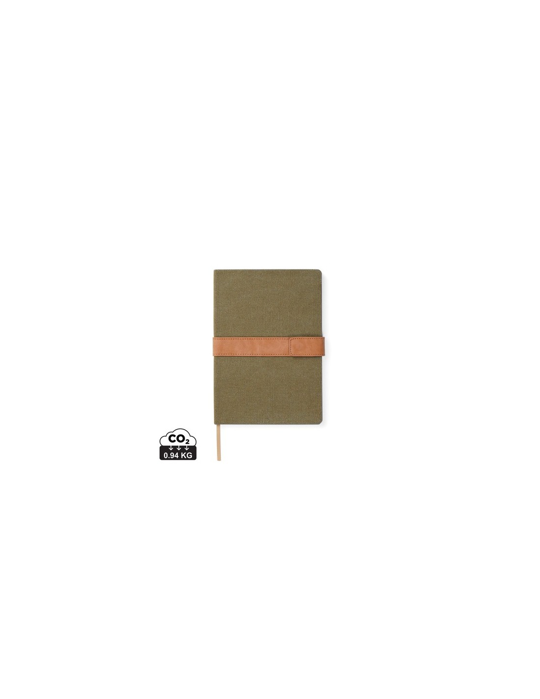 Toma notas con estilo con nuestro cuaderno A5, que cuenta con una tapa de papel reciclado con una práctica banda de poliuretano y cierre magnético. El cuaderno contiene 80 hojas de papel interior reciclado de 80 g/m² con impresión rayada, lo que lo hace perfecto para todas tus necesidades de toma de notas. Fabricada con un 75% de materiales reciclados certificados por RCS (Recycled Claim Standard), la libreta es una elección responsable. La certificación RCS garantiza una cadena de suministro completamente certificada de los materiales reciclados utilizados, lo que enfatiza nuestro compromiso con el abastecimiento responsable. El contenido reciclado total de la libreta se basa en su peso total. Material : Lienzo, Papel Recycled Content Percent : 65 Conforme directiva Cadmio 91/338/EC, Conforme contenido de plomo U.S, Conforme PAHS content in Reach & ZEK 01-4-08, Conforme directiva Phtalate content, Libre de parafinas cloradas de cadena corta y media., certificado de Recycled Claim Standard Packaging : Polybag y a granel All print codes : Screen Transfer OS,Digital Transfer OS,Hot Stamping - Print code default : Serigrafía por Transferencia - parte frontal y baja del artículo - 100 x 50 mm - max color : 6 Social Audits : BSCI Total CO2 emissions : 0,94.