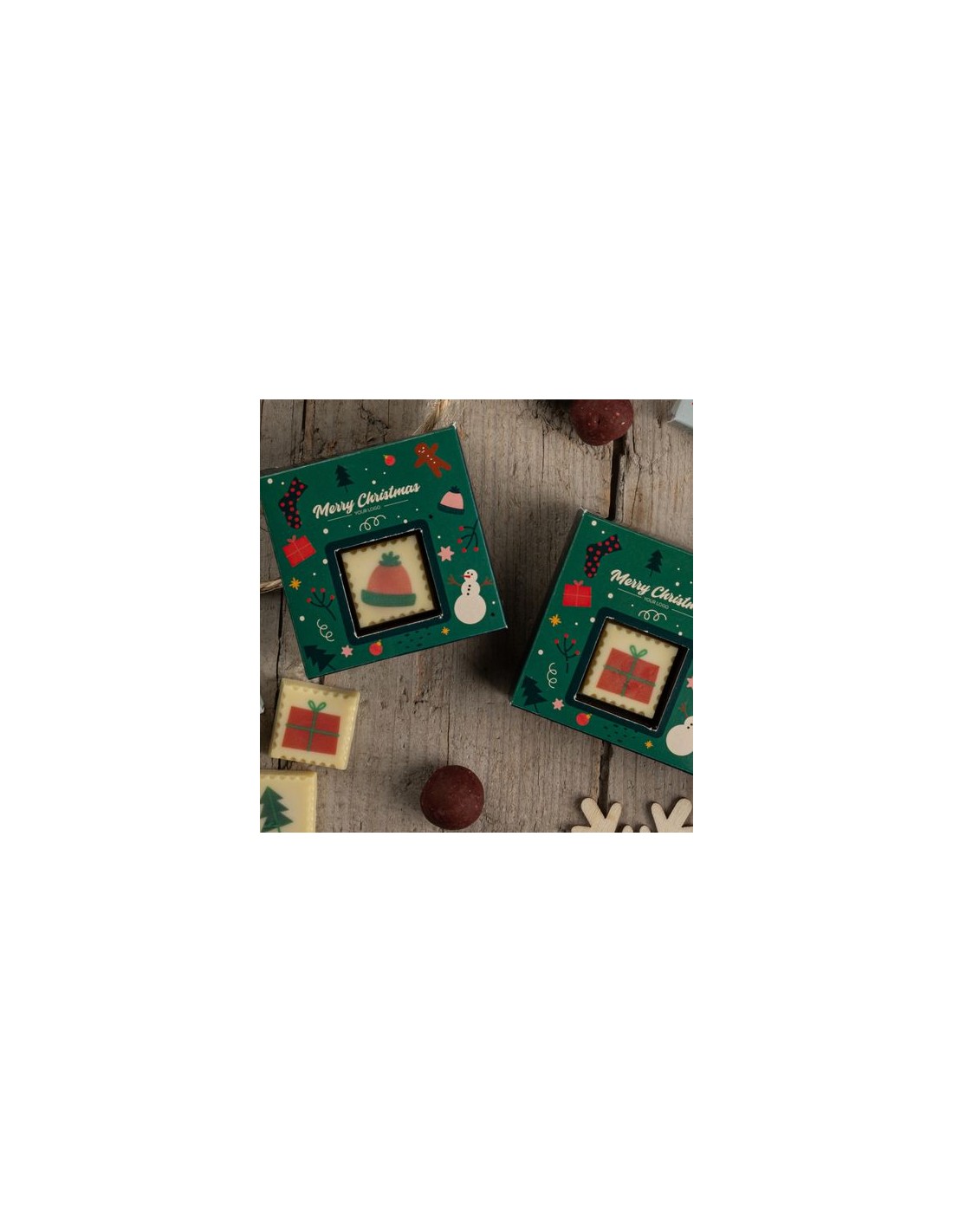 contenido : 4 chocolates triangulares rellenos con almendras decorados con una impresión personalizada (total 68 g)Saboro : chocolate blanco relleno de almendrasOpciones de producto : papel blanco, papel kraft o papel crudo con ajot de fibras de hierbaInforomación adicional : moldeado en R-PET (PET reciclado), papel blanco de serie, papel kraft o papel crudo con ajot de fibras de hierba elección opcional, posibilidad de personalizar el envase y el chocolate (elemento gráfico en el chocolate)Dimensiones : 77 x 78 x 22Cantidad Mínimo : 100 exFecha de caducidad mínima : 4 mesesTipo de impresión : chocolate: digital alimentos, envasado: digital.