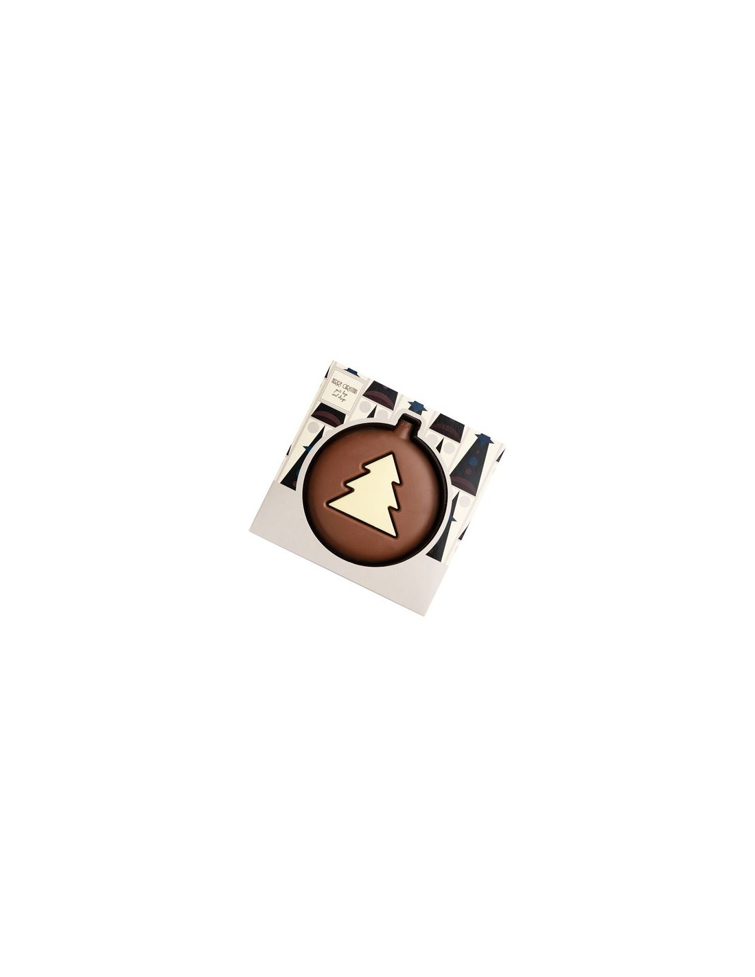 contenido : bole de Navidad de chocolate (65 g en total)Saboro : chocolate con leche con du chocolate blancoOpciones de producto : moldeado en R-PET (PET reciclado), papel blanco, papel kraft o papel crudo con ajot de fibras de hierbaDimensiones : 135 x 137 x 15 mmCantidad Mínimo : 100 exFecha de caducidad mínima : 8 mesesTipo de impresión : digital.
