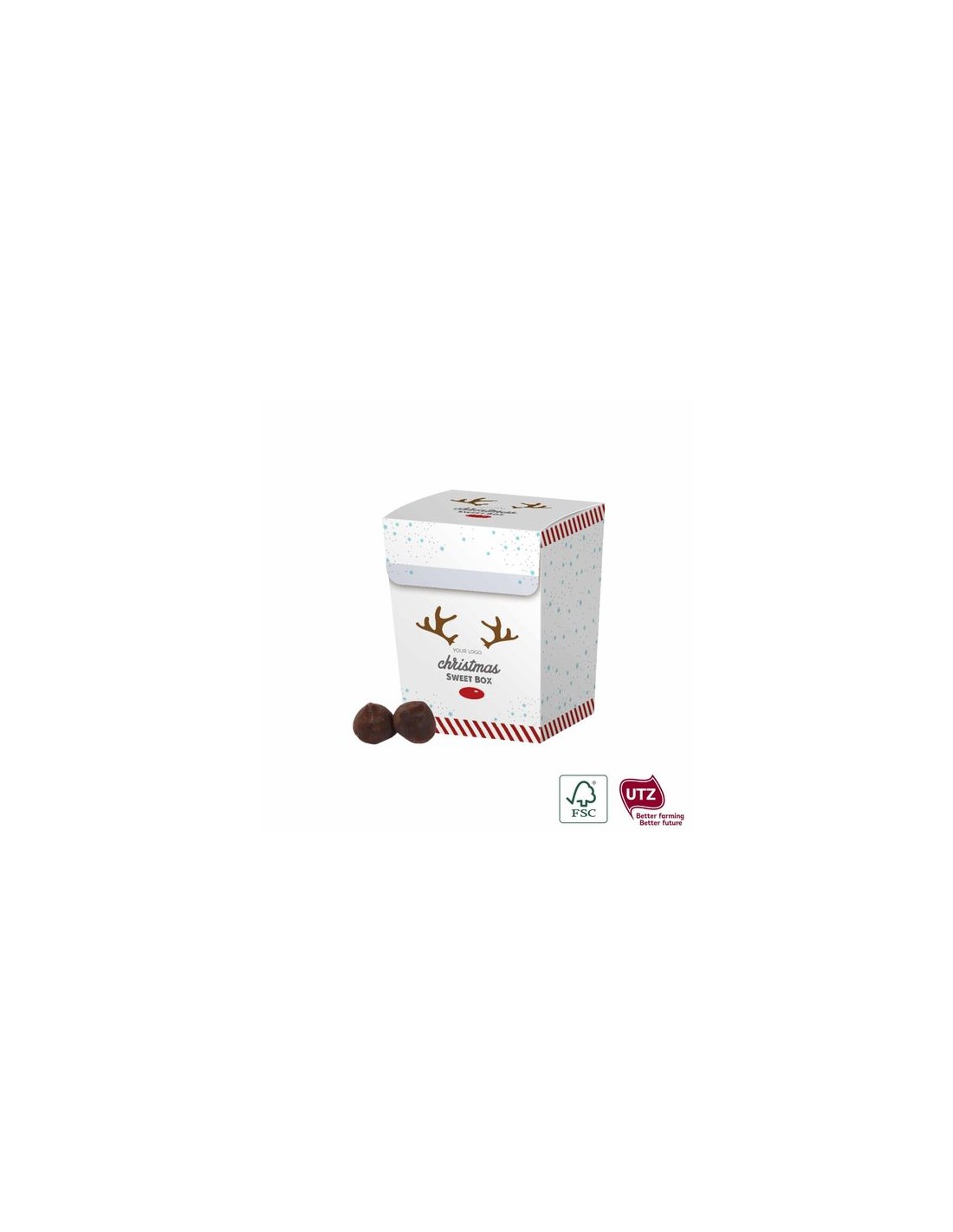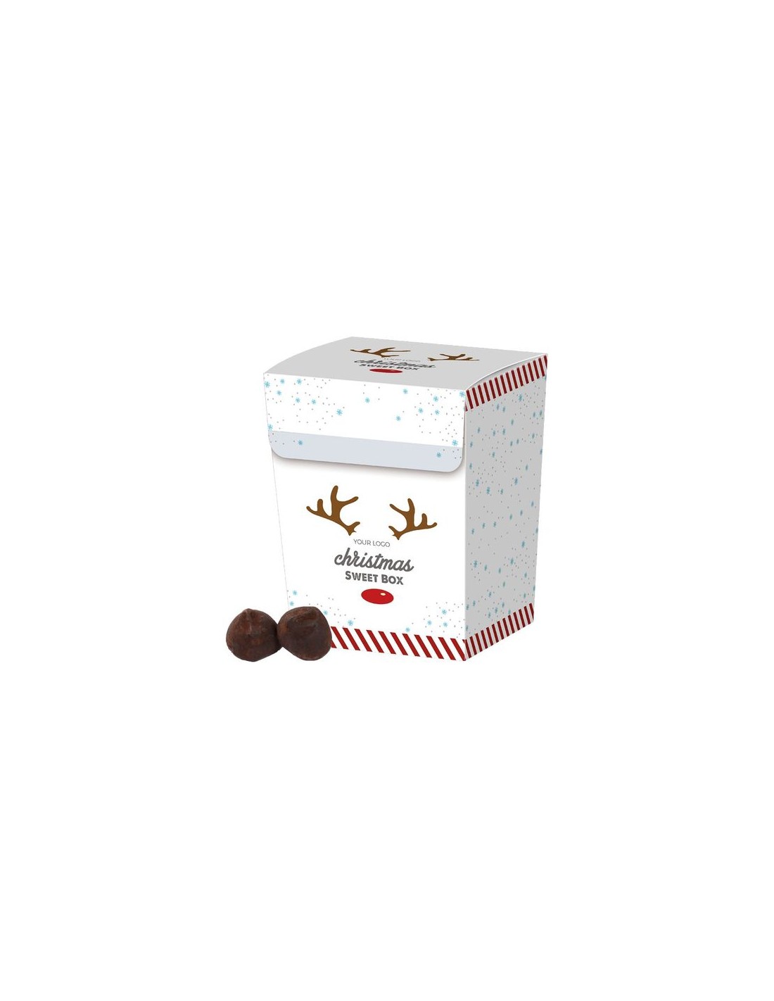 contenido : 5 trufas francesas (40 g en total)Saboro : chocolateOpciones de producto : papel blanco, papel kraft o papel crudo con ajot de fibras de hierbaInforomación adicional : papel blanco de serie, papel kraft o papel crudo con ajot de fibras de hierba elección opcionalDimensiones : 70 x 78 x 98 mmCantidad Mínimo : 200 piezasFecha de caducidad mínima : 6 mesesTipo de impresión : digital.