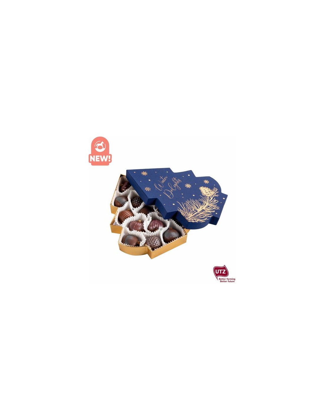 contenido : Praline de Navidad de chocolate con leche 168 gSaboro : Pan de jengibre, manzana a la cannelle, prune séchée, naranja aux clos de girofleOpciones de producto : L'etiqueta par défaut est du papel blanco. Facultativement en papel kraft.Dimensiones : 208 x 158 x 25 mmCantidad Mínimo : 50 exFecha de caducidad mínima : 4 mesesTipo de impresión : digital.