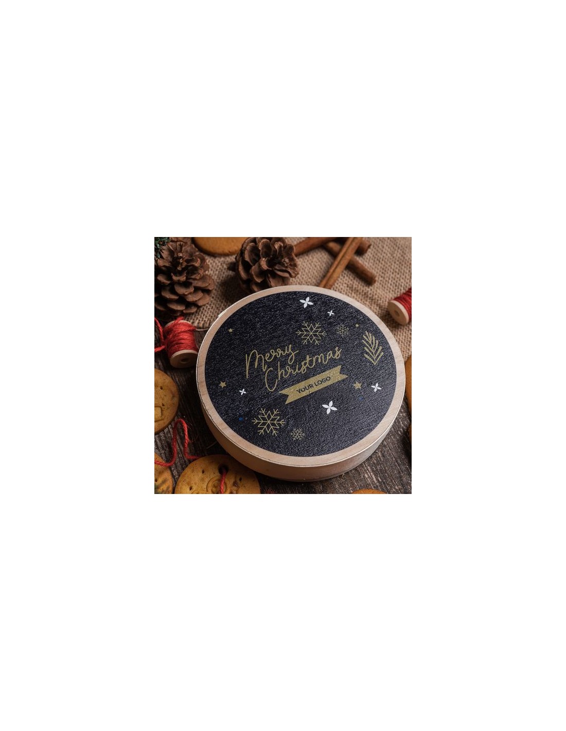 contenido : GALLETAS crujientes de manzana y canela 70 gOpciones de producto : etiqueta blanca o kraft, tipo de personalización: etiqueta o impresión directamente sobre la cajaInforomación adicional : lata metálica reutilizable según el principio de "residuo cero", etiqueta en papel blanco de serie, papel kraft elección opcional, ficelle rojo incluseDimensiones : Ø 140, h 35 mmCantidad Mínimo : 50 exFecha de caducidad mínima : 6 mesesTipo de impresión : directamente sobre la caja: digital, digital.