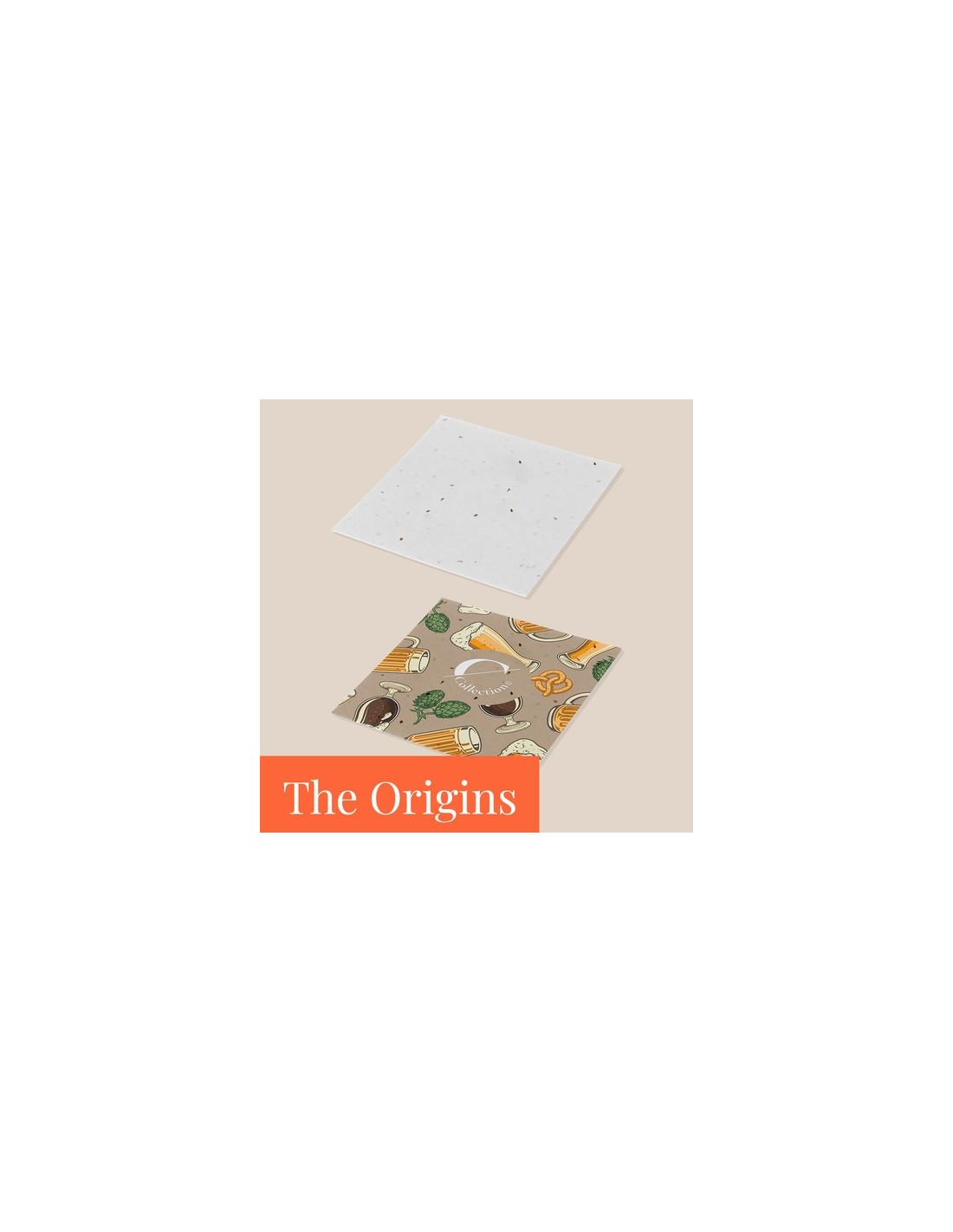 Posavasos elaborado con papel de semillas, sostenible y biodegradable. Con certificado FSC. Pedido mínimo 251 uds. Producto disponible en 7 días desde aprobación de diseño. Material : Papel de pulpa de madera de 200 gr/m² con semillas de manzanilla, amapola, margarita y lavanda. Gramaje : 200 gr/m² Tecnica De Marcaje : IMPRESION DIGITAL GERMINA