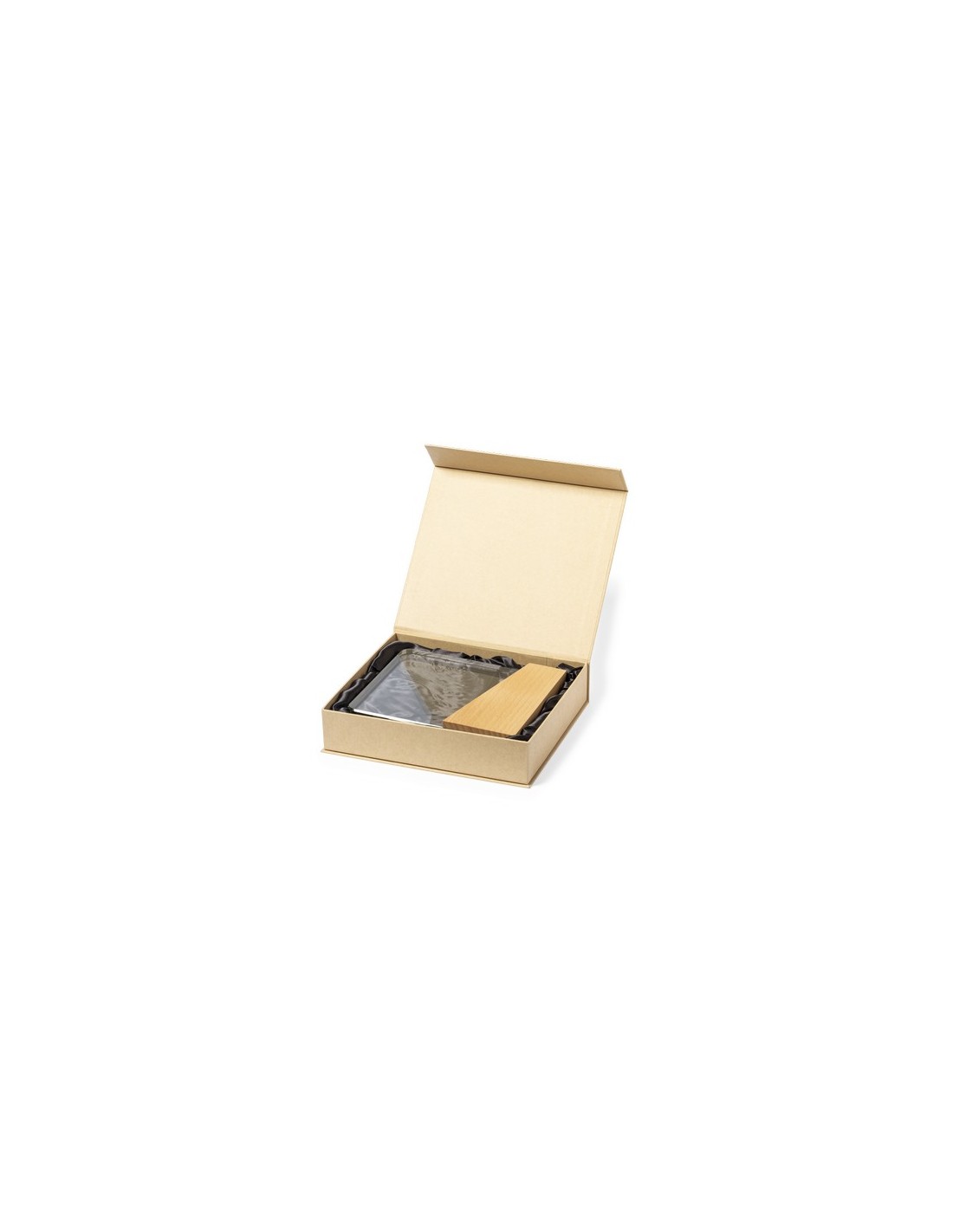 Placa conmemorativa fabricada en cristal grueso y resistente, con base en madera natural. Presentada en estuche de protección kraft, con cierre magnético y espuma interior. Composition : Cristal/ Madera.
