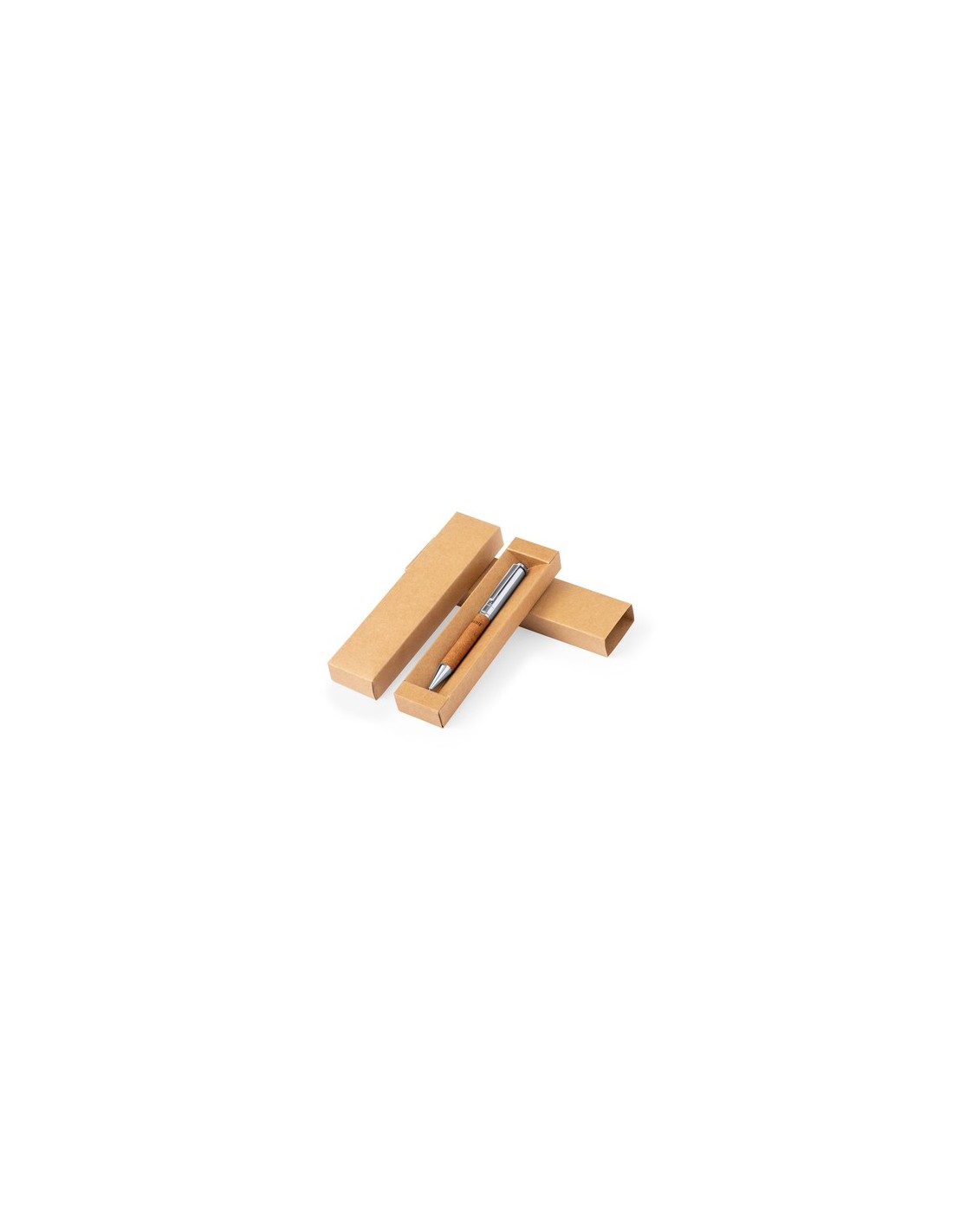 Bolígrafo fabricado en metal cromado y con cuerpo recubierto en cuero reciclado. Elegante clip metálico y accesorios a juego, de mecanismo giratorio y en tinta azul. Con distintivo cuero reciclado en cuerpo y presentado en estuche individual de diseño kraft con funda a juego.El cuero reciclado rescata las fibras desechadas en los procesos de fabricación del cuero, minimizando el desperdicio de material, contribuyendo a reducir el impacto ambiental y manteniendo a la vez sus propiedades originales. Composition : Cuero Reciclado/ Metal.