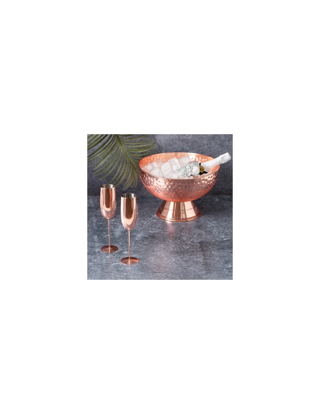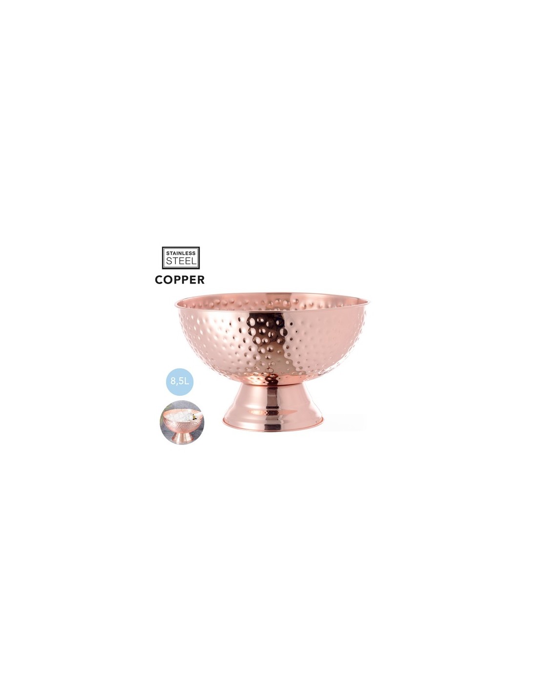 Elegante champanera fabricada en acero inoxidable con recubrimiento de cobre galvanizado. Capacidad de 8,5 l. Con original diseño en acabado brillo, es un perfecto accesorio para presentar con estilo las bebidas frías. Presentada en una exclusiva caja individual de diseño negra. 8,5 L Composition : Acero Inox.