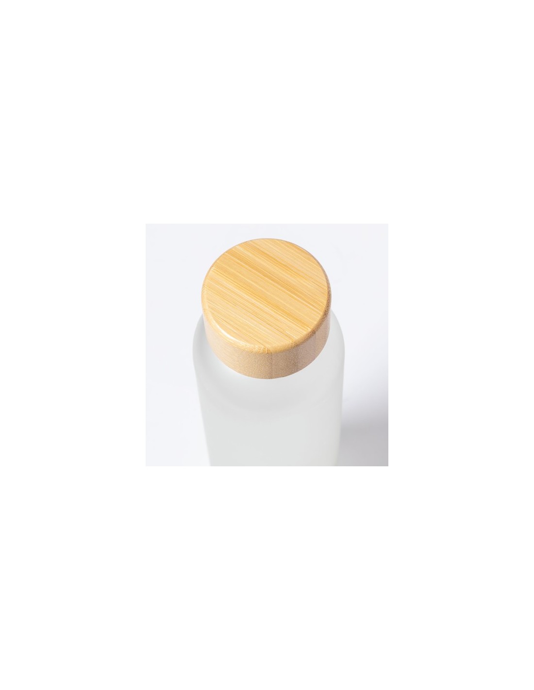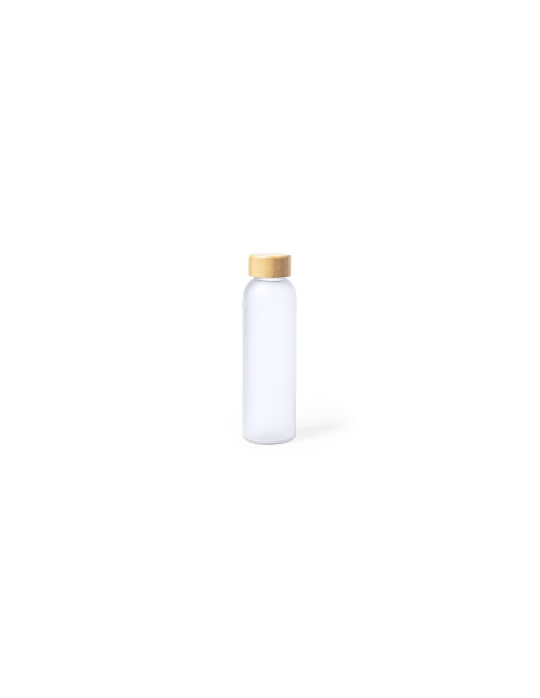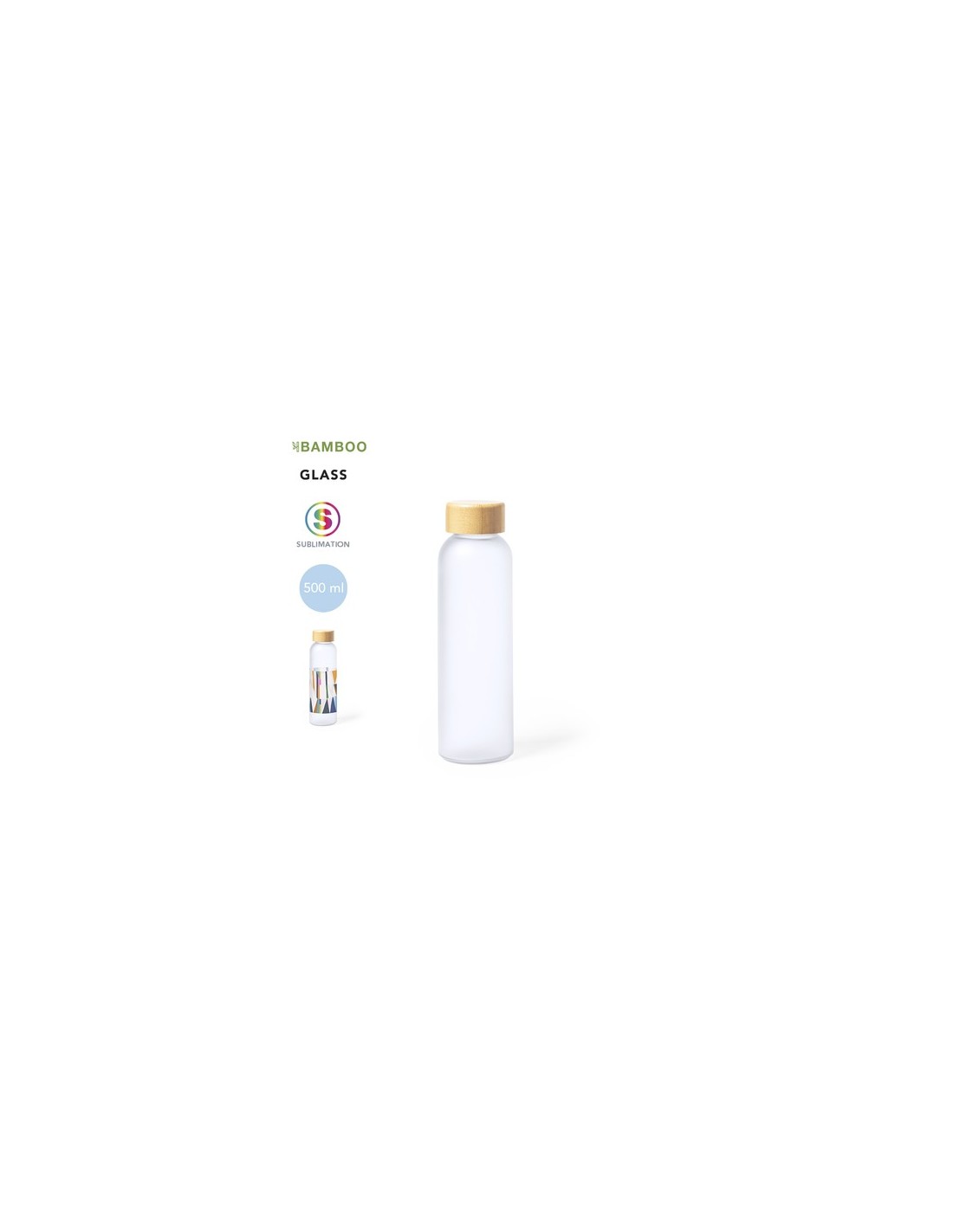 Bidón de línea nature y 500 ml de capacidad, fabricado especialmente para marcaje en sublimación. Cuerpo fabricado en cristal, con tapón a rosca de bambú y libre de BPA. Presentado en caja individual de diseño eco. 500 ml Composition : Cristal/ Bambú.