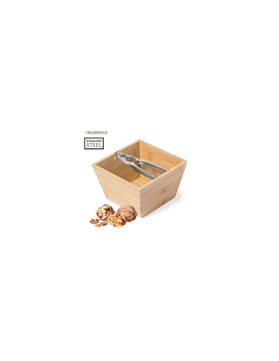 Práctico set cascanueces. Contenido: Bowl fabricado en bambú natural, con 1,4 l de capacidad. Cascanueces de acero inoxidable, con diseño ergonómico que permite romper la cáscara de manera rápida y sencilla, manteniendo el fruto intacto. Presentación individual en caja de diseño kraft. Bowl Bambú Incluido Composition : Metal.