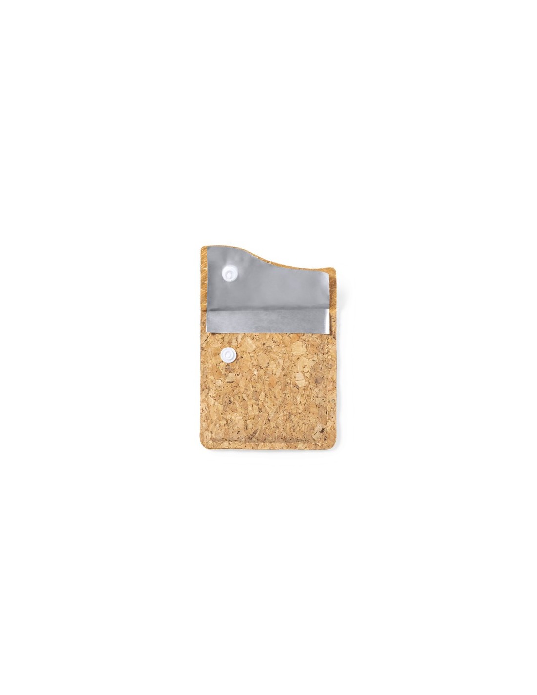 Cenicero de bolsillo de línea nature, con exterior en corcho natural e interior en aluminio ignífugo. Original solapa con cierre de corchete. Composition : Corcho/ Aluminio.
