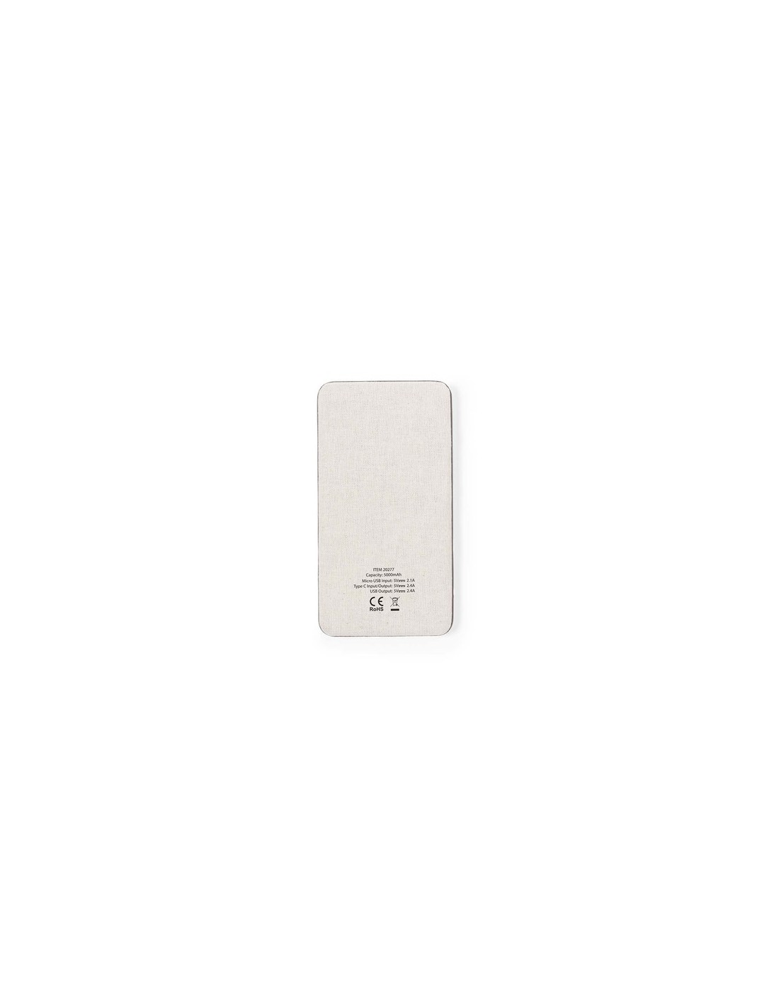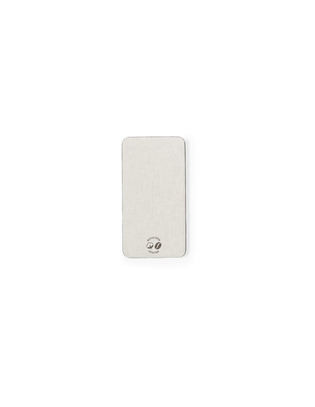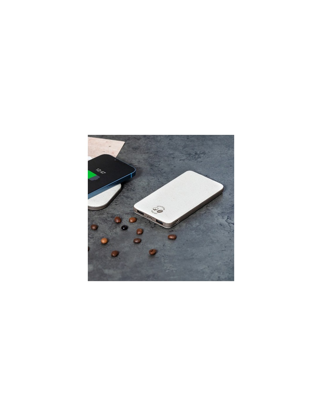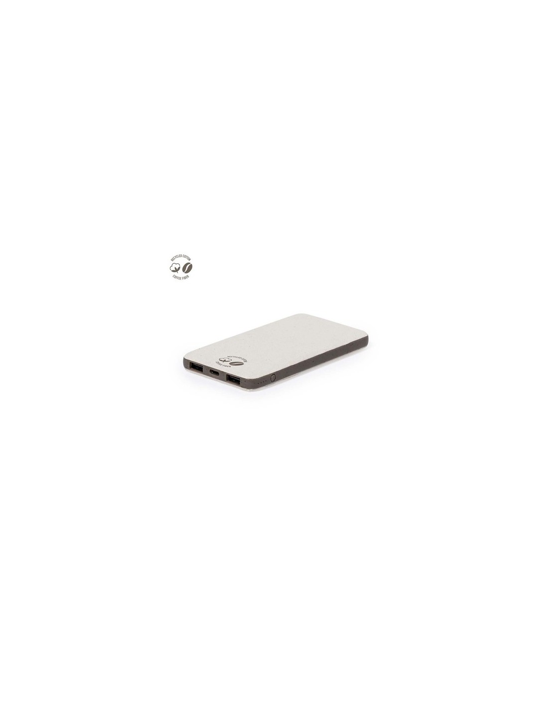 Batería auxiliar externa de 5.000 mAh, fabricada en fibra de café y algodón reciclado. Con 2 salidas USB, entrada micro USB y conexión dual de entrada y salida Tipo C. Cable de carga Tipo C incluido, y presentada en caja individual de diseño kraft. Con distintivos de fibra de café y algodón reciclado. Disponible manual de instrucciones en español e inglés.La fibra de café es una solución circular que se obtiene de la utilización de los residuos producidos en la obtención del café. Una alternativa sostenible que favorece la reducción del uso de plásticos, ahorrando energía en su proceso de fabricación y contribuyendo al cuidado del medio ambiente.Entrada/Salida USB C: 5V DC 2.4VSalida USB: 5V DC 2.4AEntrada Micro USB: 5V DC 2.1A Las capacidades mostradas en todas nuestras baterías auxiliares externas son reales, incorporando todas ellas baterías de grado A y no recicladas, con una vida útil de al menos 500 ciclos de carga y según normativa CE.Además, están fabricadas conforme a los estándares RoHS y en cumplimiento con los siguientes requisitos de seguridad:Sistema de protección contra sobrecarga del power bank.Sistema de protección contra descarga completa que proporciona una mayor durabilidad del power bank.Sistema de bloqueo para evitar cortocircuitos.Sistema de transferencia de carga constante, acorde con la capacidad del dispositivo de destino.Disponible certificación GRS (Global Recycled Standard / Estándar de Reciclaje Global), que garantiza el origen reciclado del material usado para fabricar el producto. 5000 mAh. 2 Salidas USB y 1 Tipo C. Entrada Micro USB y Tipo C Composition : Fibra de Café/ ABS/ Algodón Reciclado.