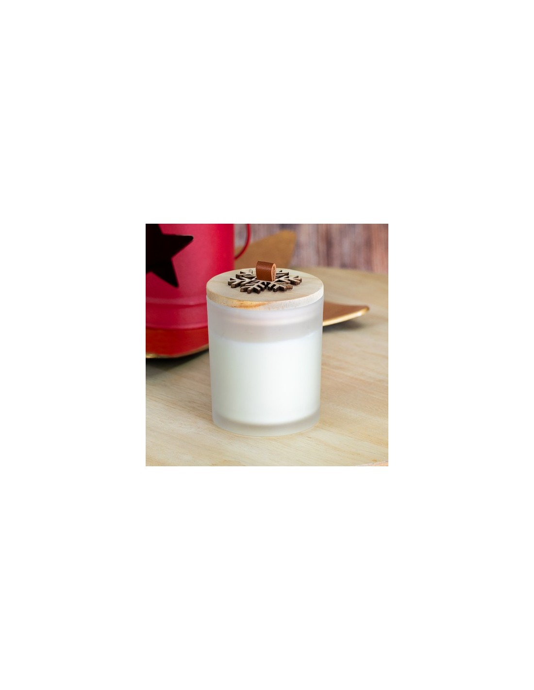 Vela de diseño navideño con aroma vainilla. Fabricada en cristal, con tapa de madera pulida y relieve diseñado en forma de copo de nieve. Presentada en atractiva caja individual kraft. Aroma Vainilla Composition : Cristal/ Madera.