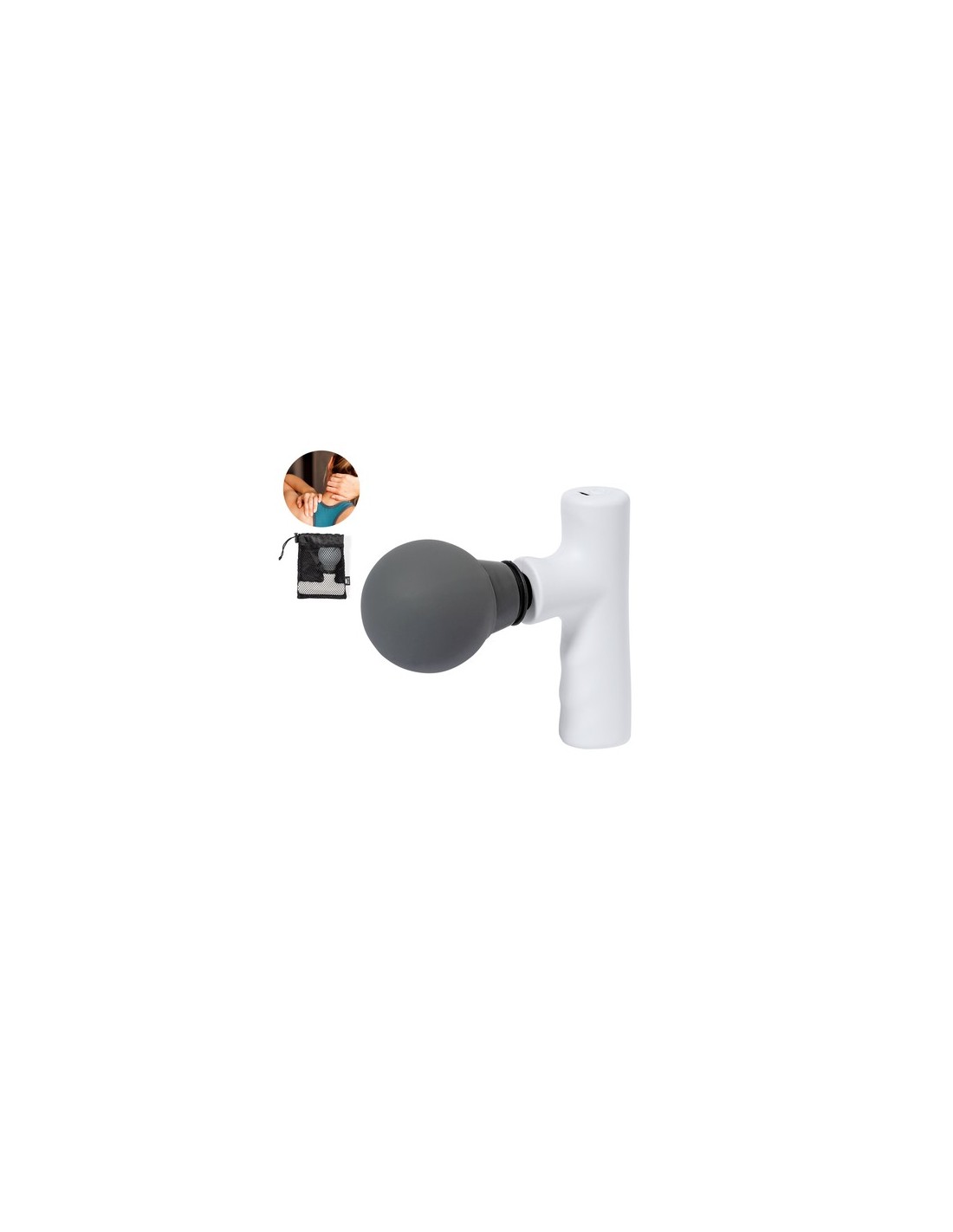 Masajeador eléctrico. Ayuda a relajar los músculos, aliviar los efectos del entrenamiento, liberar tensión y revitalizar el cuerpo. Con dos posiciones de intensidad. Batería recargable de larga duración de 800 mAh - cable USB incluido-. Con manual de uso en español e inglés. Presentado en funda de poliéster RPET con cierre de cordón, elaborada a partir de plástico reciclado para así fomentar la reutilización de residuos plásticos y contribuir a la sostenibilidad del planeta. Etiqueta distintiva RPET en la funda. 2 Posiciones. Batería 800 mAh. Funda Poliéster RPET
