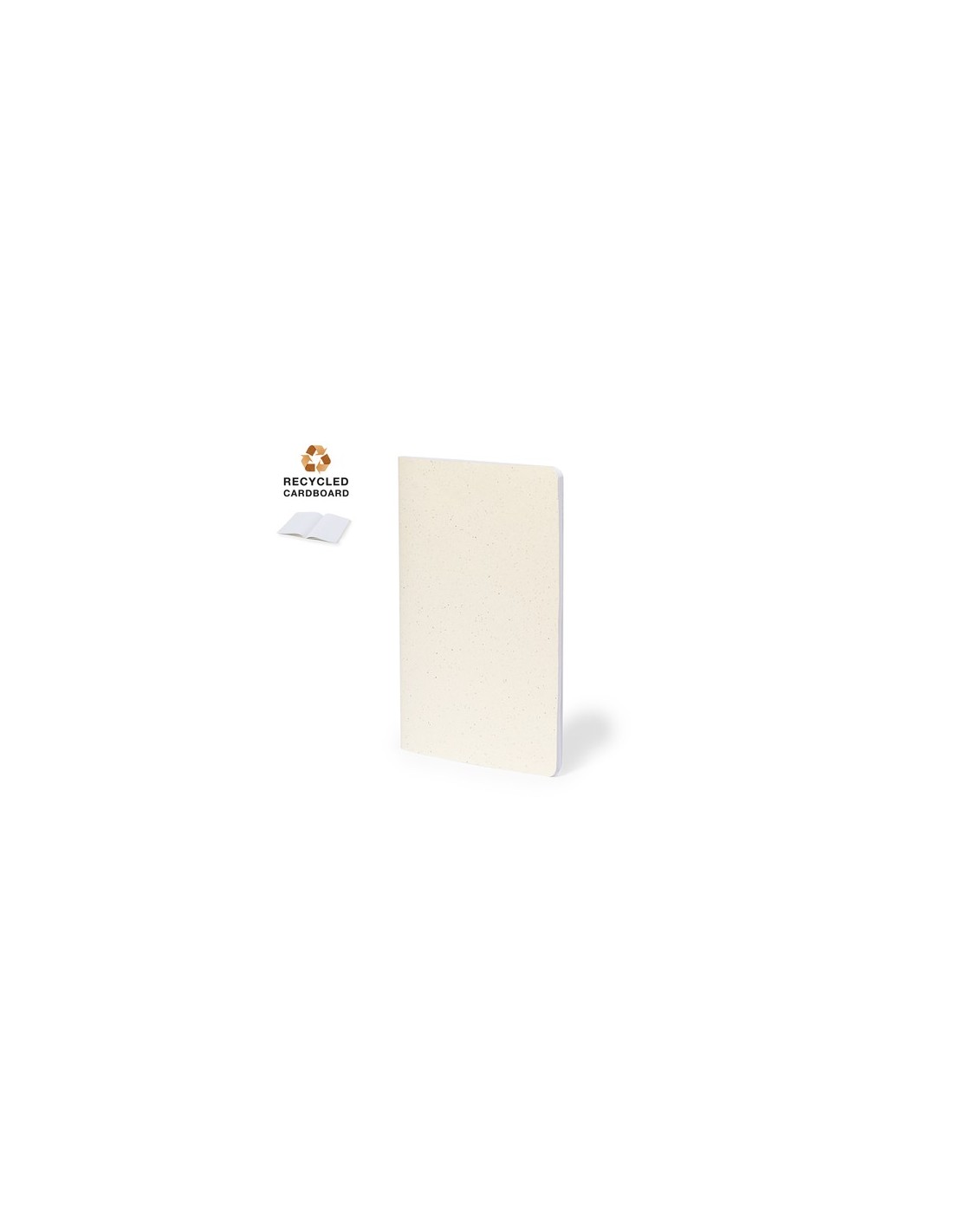 Libreta con tapas fabricadas en cartón reciclado y acabado cosido a juego en el lomo. Interior con 60 hojas blancas lisas. Presentado en bolsa individual reciclada. 60 Hojas Composition : Cartón Reciclado.