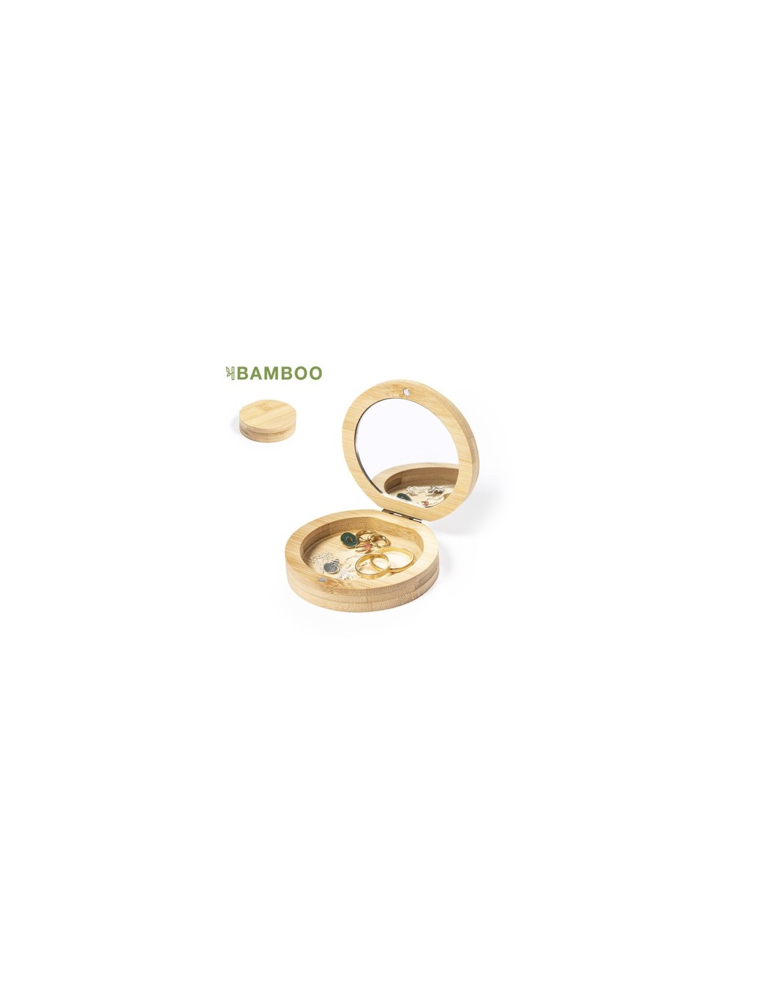 Joyero de línea nature, con carcasa fabricada en bambú. Con espejo interior 1X y cierre magnético. Presentado en caja individual de diseño kraft. Composition : Bambú.