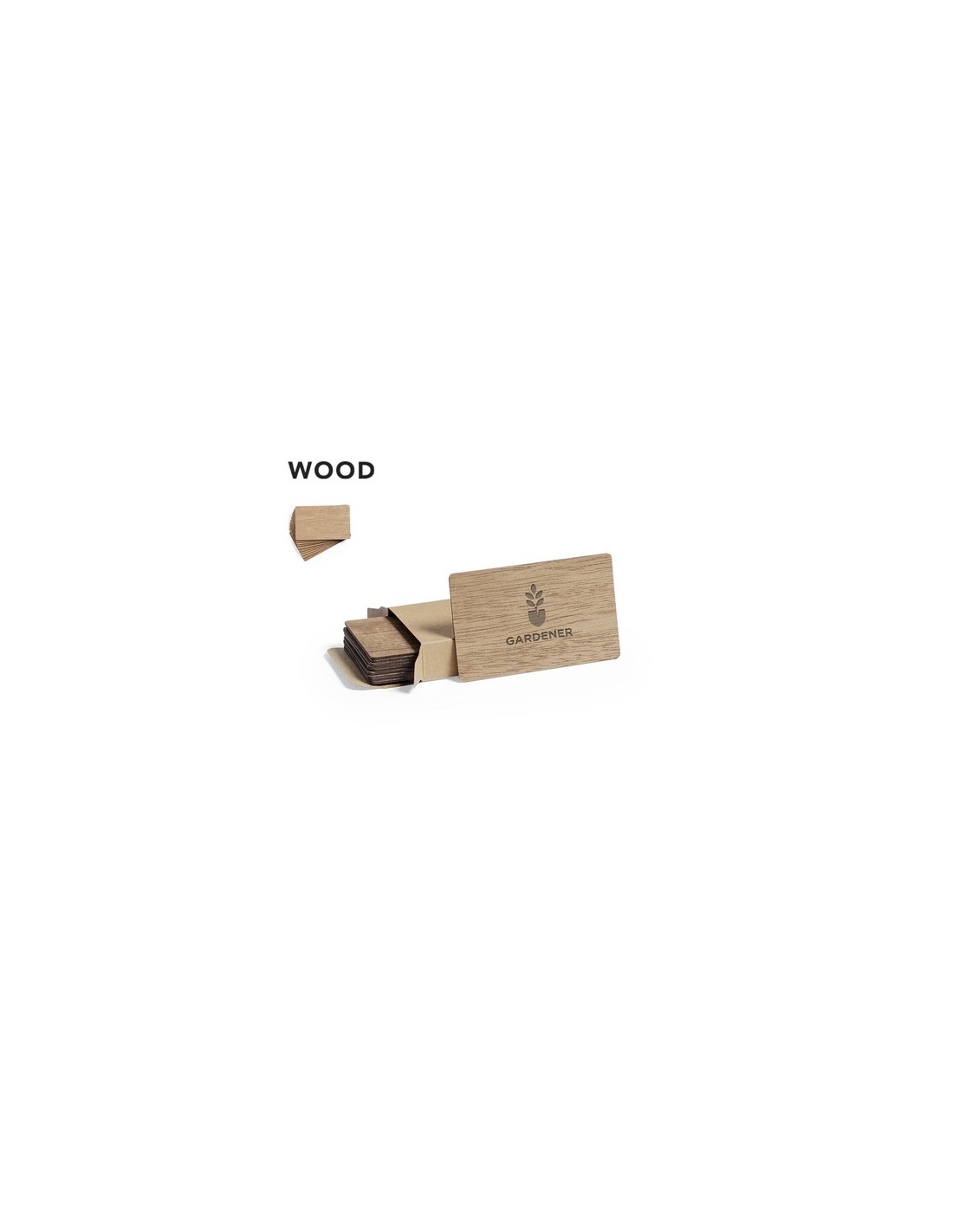 Set de 10 tarjetas de línea nature, fabricadas en madera natural con acabado veteado y especialmente diseñadas para marcaje en laser. Presentación en caja individual de cartón kraft. 10 Piezas Composition : Madera.