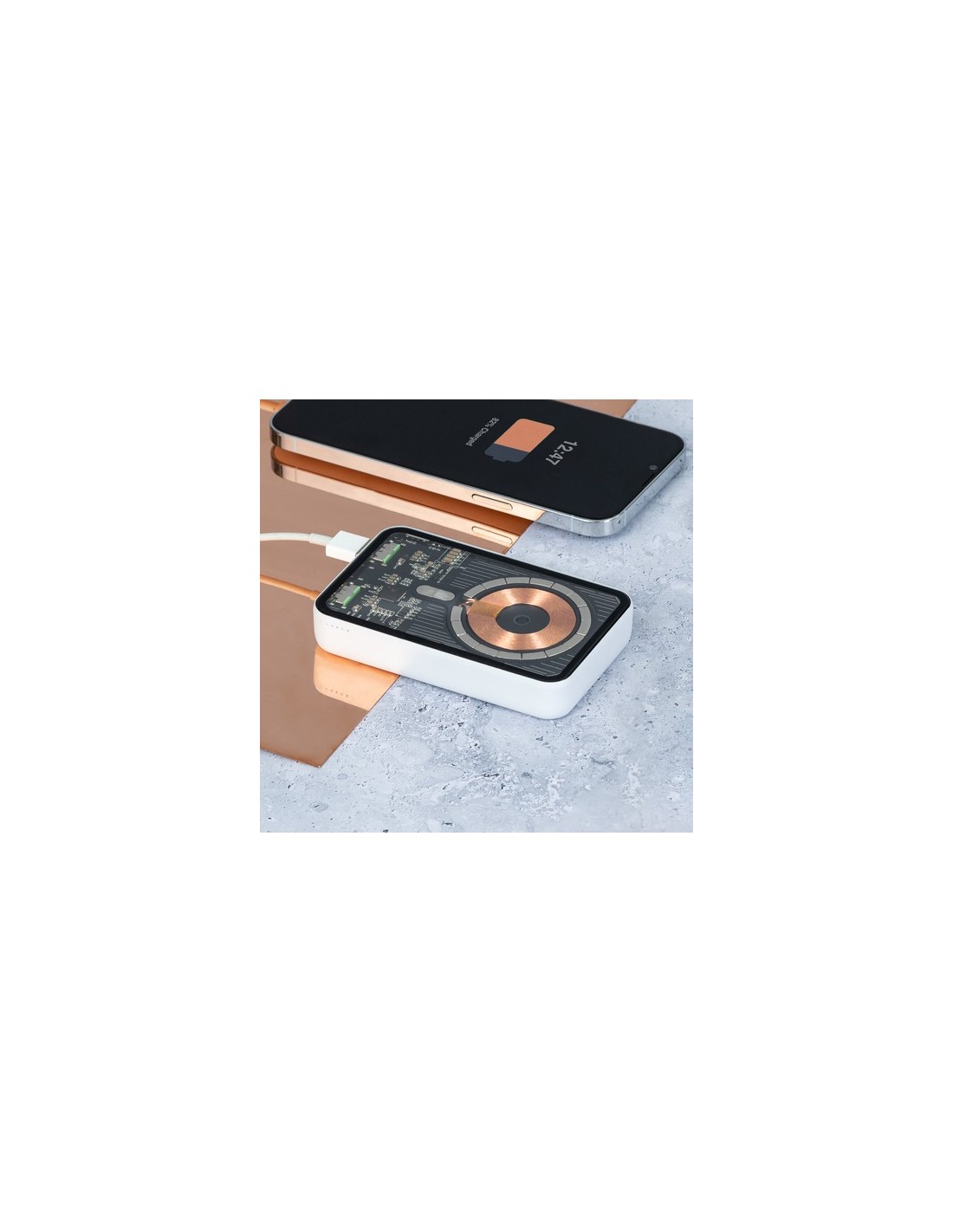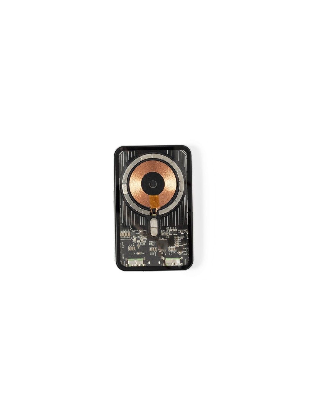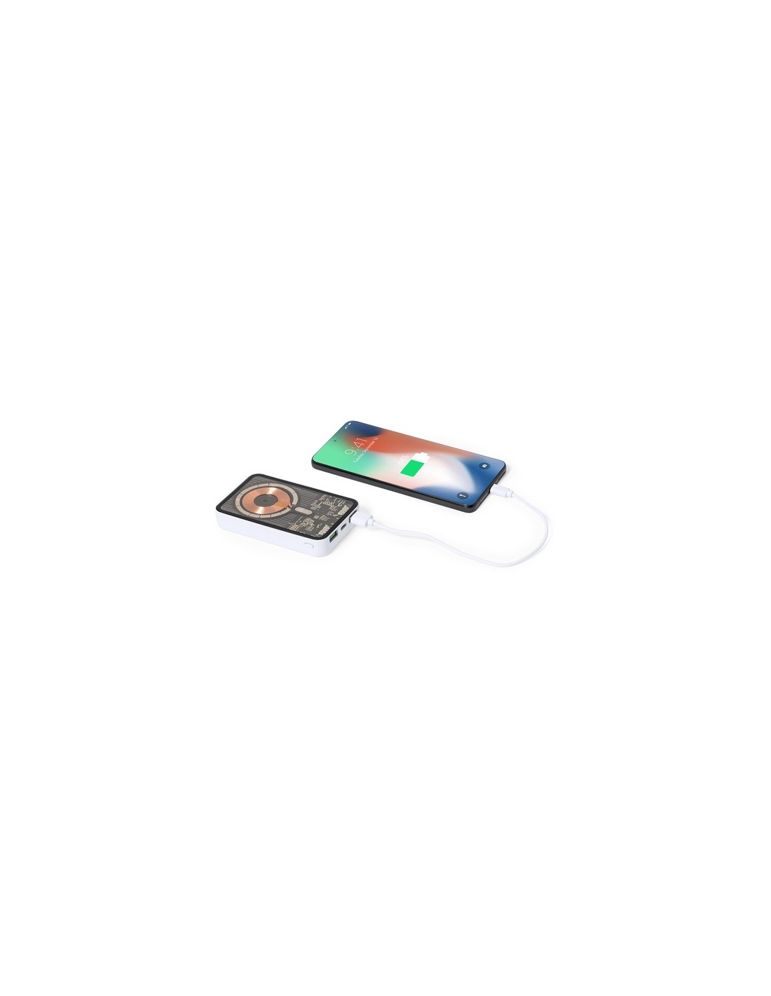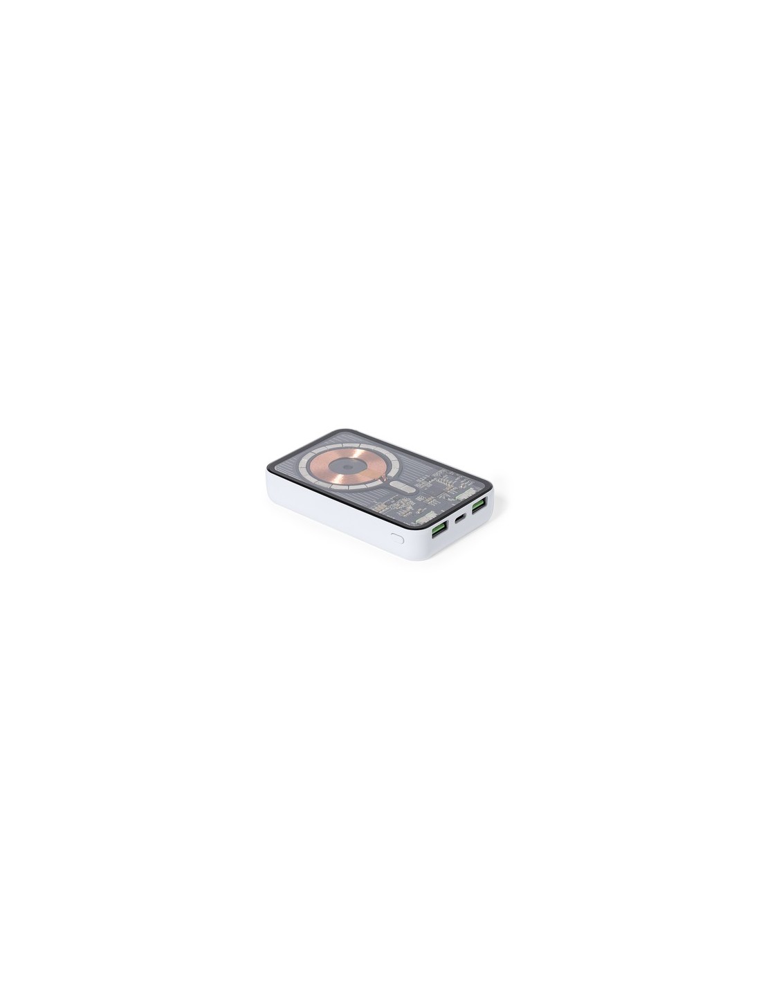 Batería auxiliar externa en distintivo diseño transparente, con 5.000 mAh de capacidad de carga. Cargador inalámbrico integrado 15W y conectores de entrada/salida Tipo C + salida USB. Con fijación magnética Magsafe, para una firme sujeción del dispositivo, compatible con dispositivos equipados con tecnología de carga inalámbrica Qi. Cable de carga incluido, con manual de instrucciones disponible en español e inglés. Presentada en caja individual de diseño eco y en cartón kraft.Entrada/Salida Tipo C: 5-12V DC 3-1.67A, 20WSalida USB: 5-12V DC 3-1.5A, 18WLas capacidades mostradas en todas nuestras baterías auxiliares externas son reales, incorporando todas ellas baterías de grado A y no recicladas, con una vida útil de al menos 500 ciclos de carga y según normativa CE. Además, están fabricadas conforme a los estándares RoHS y en cumplimiento con los siguientes requisitos de seguridad:Sistema de protección contra sobrecarga del power bank.Sistema de protección contra descarga completa que proporciona una mayor durabilidad del power bank.Sistema de bloqueo para evitar cortocircuitos.Sistema de transferencia de carga constante, acorde con la capacidad del dispositivo de destino. Inalámbrico 15W. Magnético. 5000 mAh. 2 Salidas USB. Salida y Entrada Tipo C