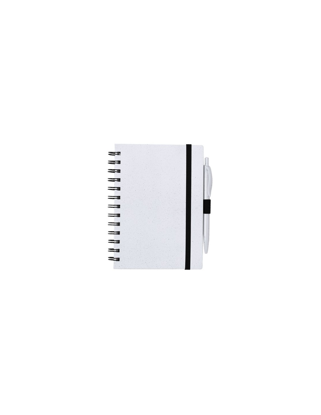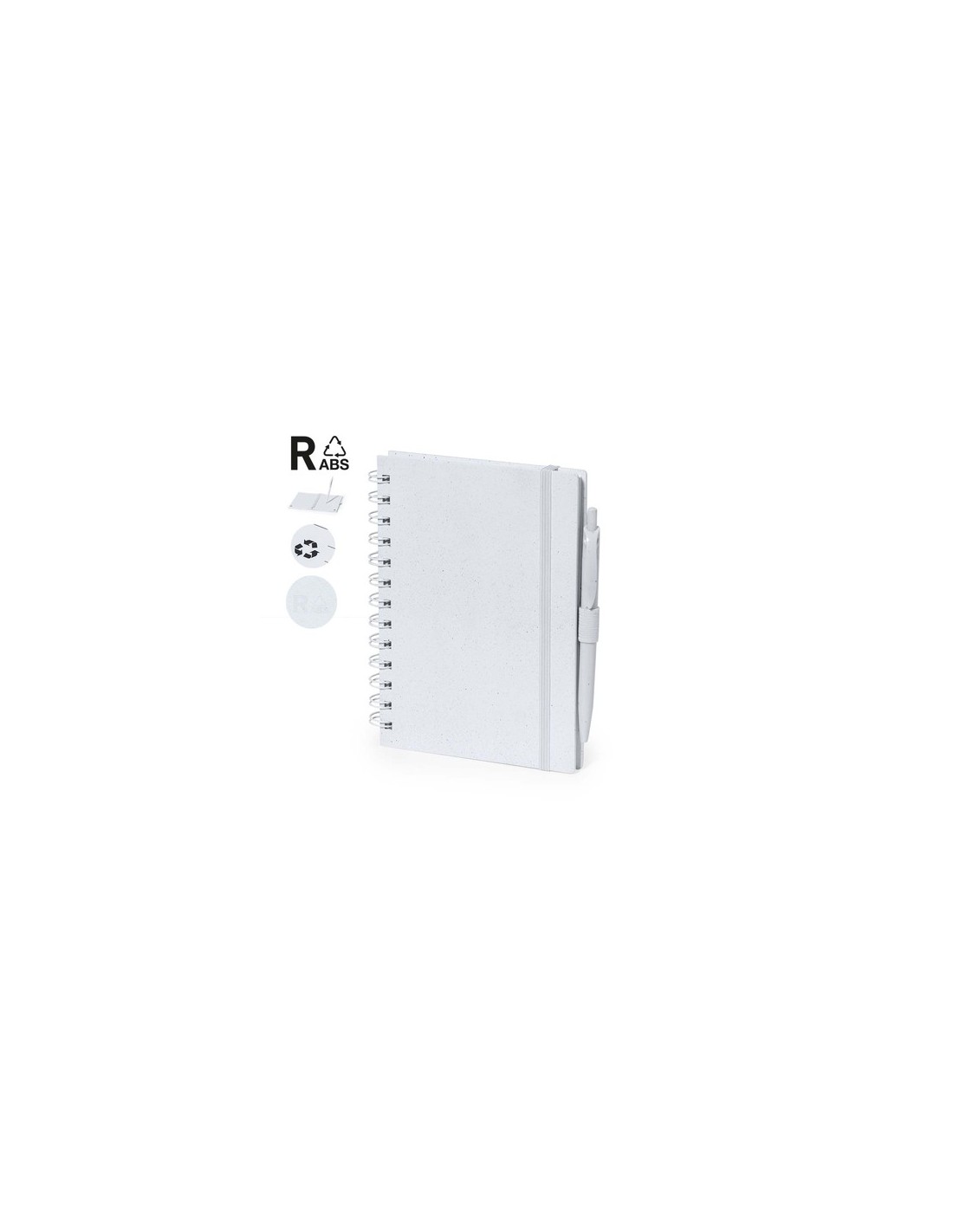 Set de libreta y bolígrafo. Libreta de anillas con tapas rígidas fabricadas en RABS y bolígrafo a juego. De tamaño A5, con elástico de cierre elegante disponible en amplia variedad de colores. Interior con 70 hojas blancas con disposición a una raya. Bolígrafo de mecanismo pulsador en RABS con tinta azul. Incluyen distintivo RABS. Presentado en bolsa individual reciclada. Portada Rígida. 70 Hojas. Bolígrafo RABS Incluido Composition : ABS Reciclado.