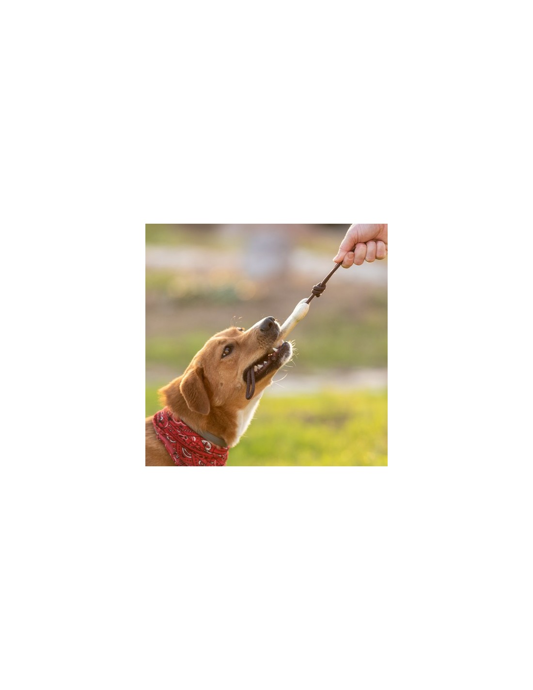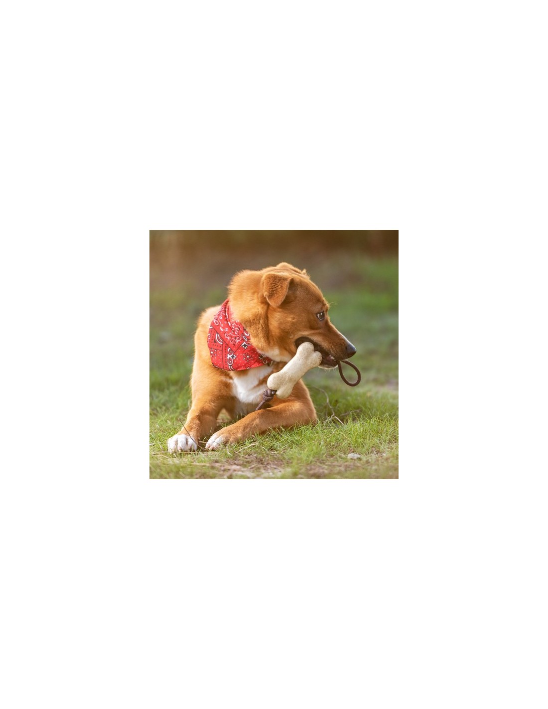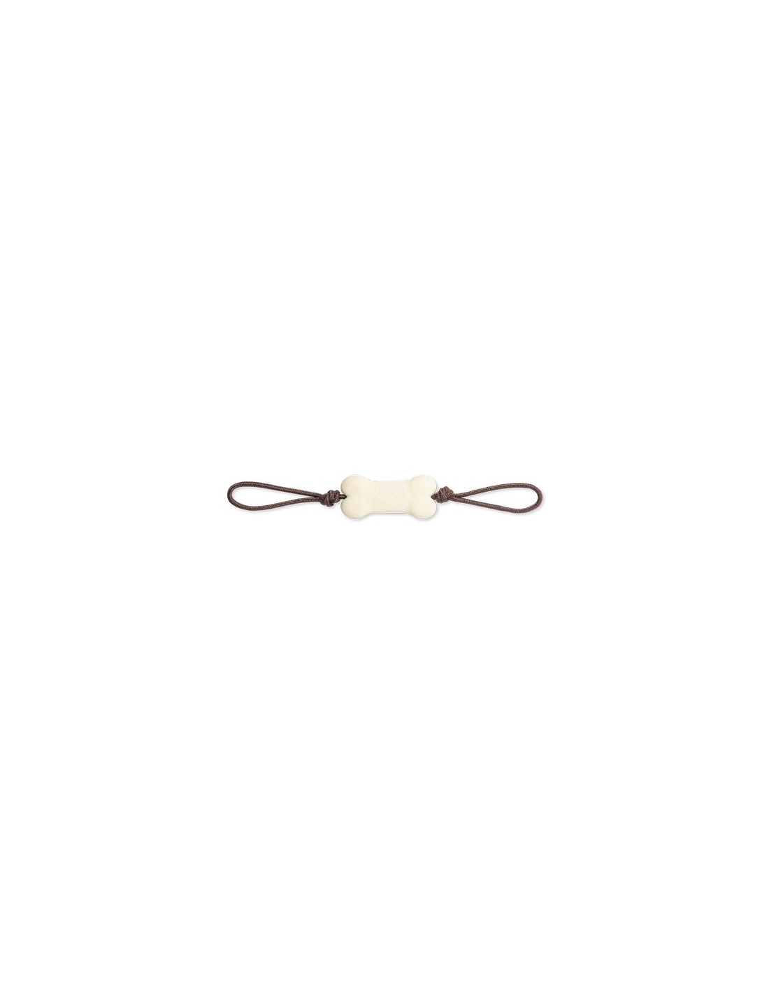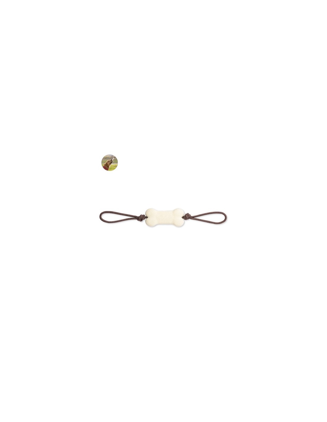 Mordedor para mascotas, con hueso fabricado en resistente material TPR, seguro e inofensivo para la mascota. Cordón en resistente poliéster. Composition : Poliéster/ TPR.