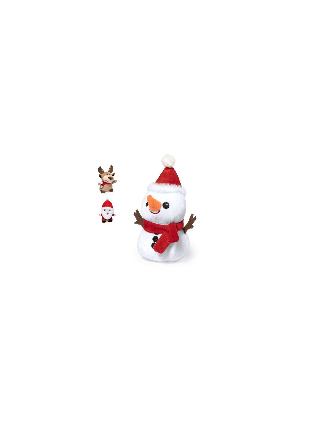 Suaves y adorables peluches con motivos navideños. Disponibles en tres divertidos y originales diseños: Papa Noel, Muñeco de Nieve y Reno. Presentado en bolsa individual reciclada. Composition : Poliéster.
