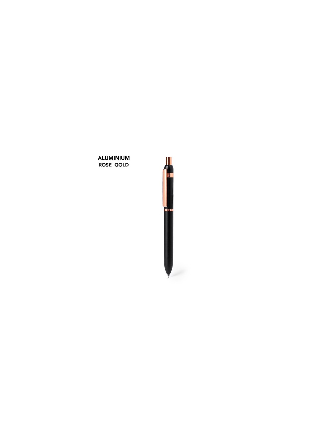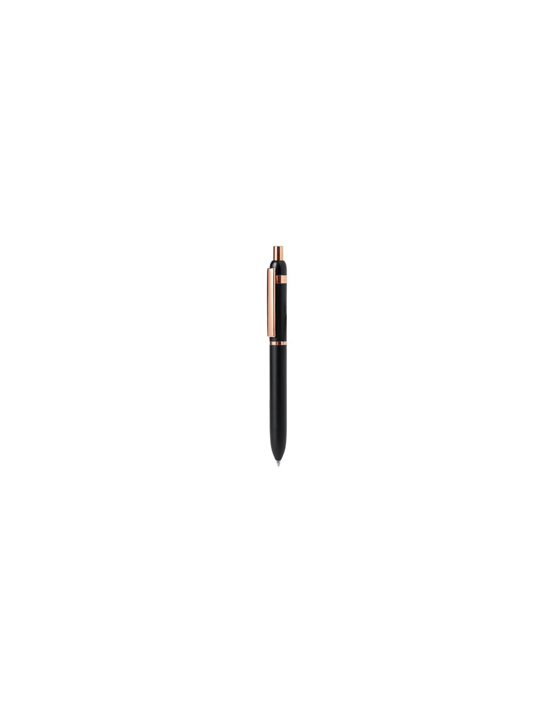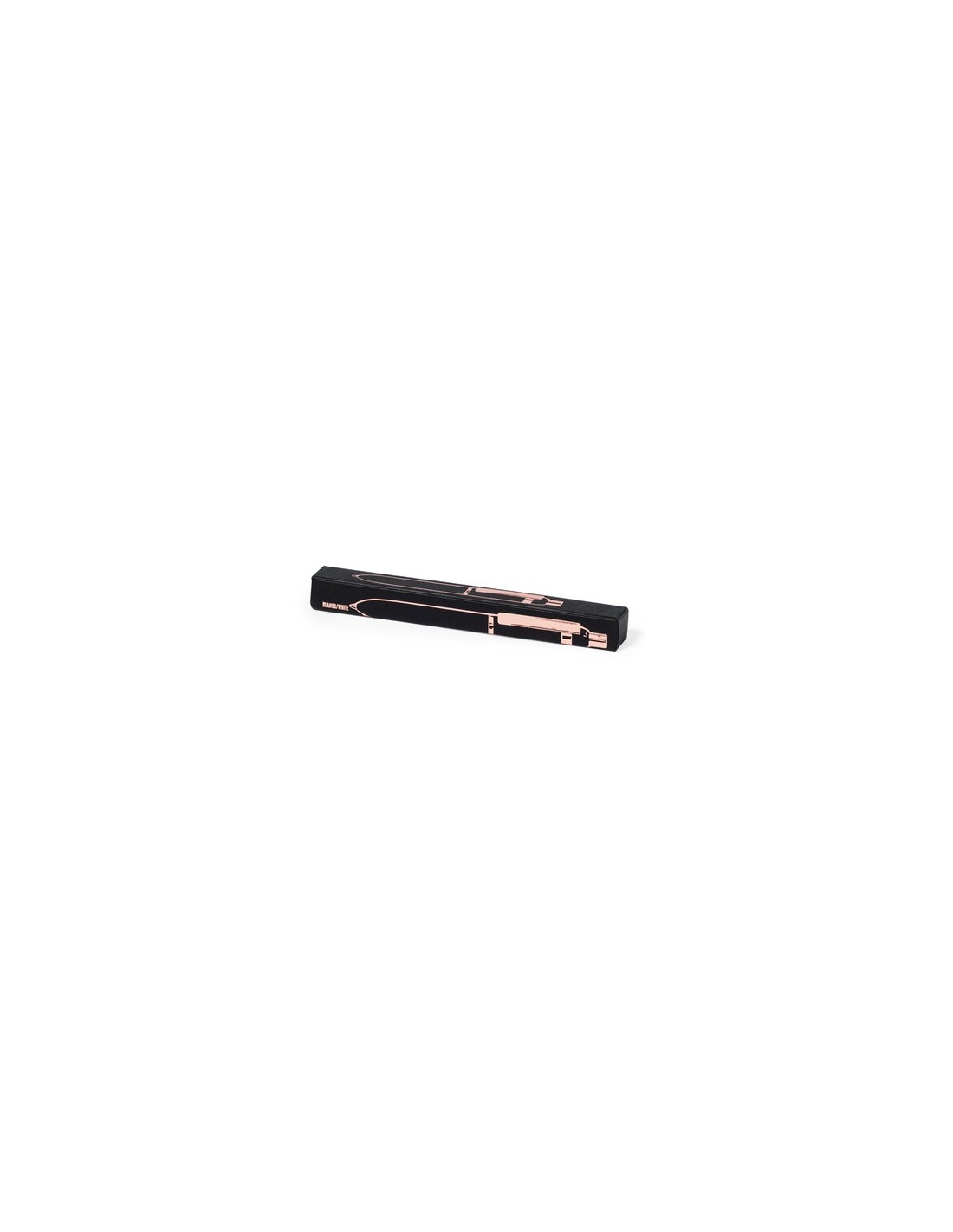 Elegante bolígrafo especialmente diseñado para el marcaje en láser con logotipo en color rosado. De mecanismo pulsador, clip metálico y accesorios en acabado cobre, con detalles plásticos en acabado rosado. Con cartucho jumbo y en tinta azul. Disponible en dos distintivos colores.Presentado en elegante caja de diseño negra. Carga Jumbo Composition : Aluminio/ ABS/ Metal.