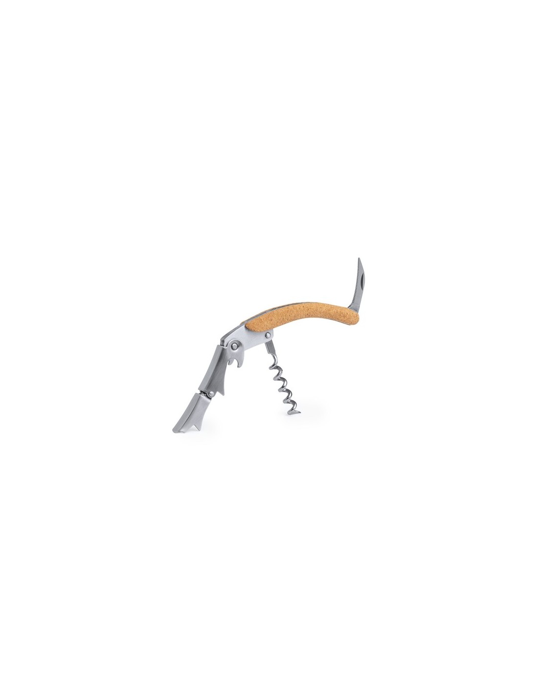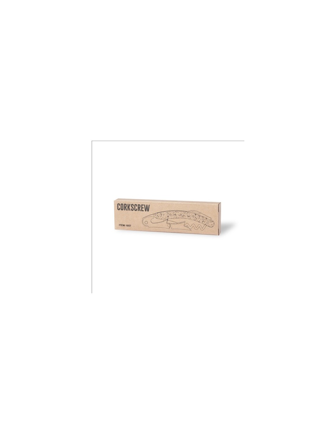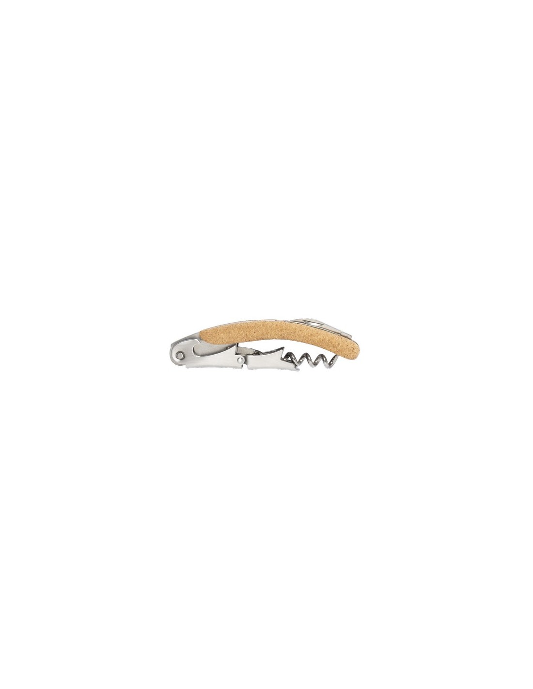 Sacacorchos de 2 tiempos fabricado en acero inox, con mango en corcho natural y cortacápsulas integrado. Presentado en caja individual de diseño kraft. Composition : Corcho.