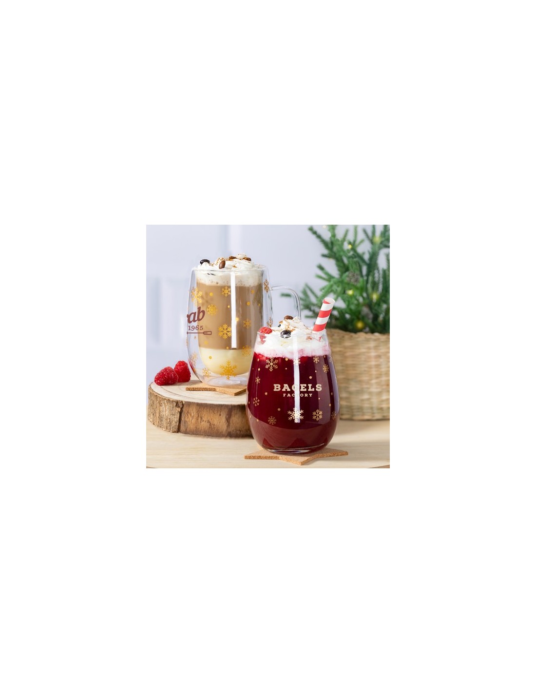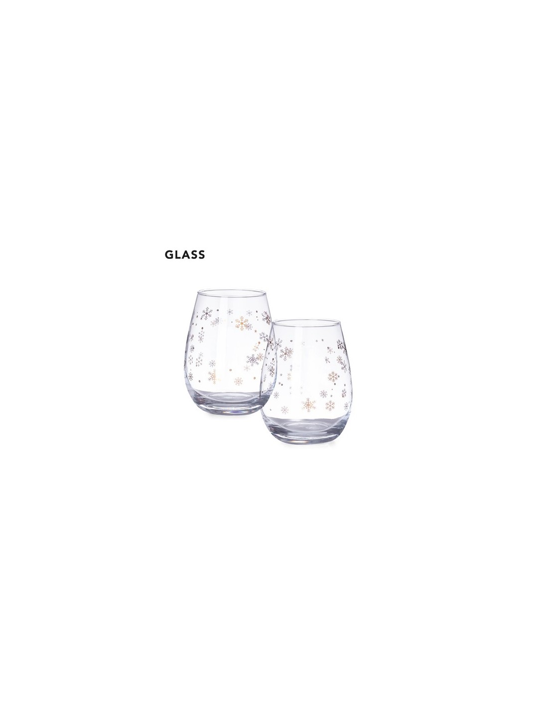 Set de 2 vasos con original diseño de copos de nieve y 500ml de capacidad. Fabricados en cristal, con área de marcaje especial en el frontal. Presentado en caja de diseño en color negro con ilustración en color dorado. 2 Piezas. 500 ml Composition : Cristal.