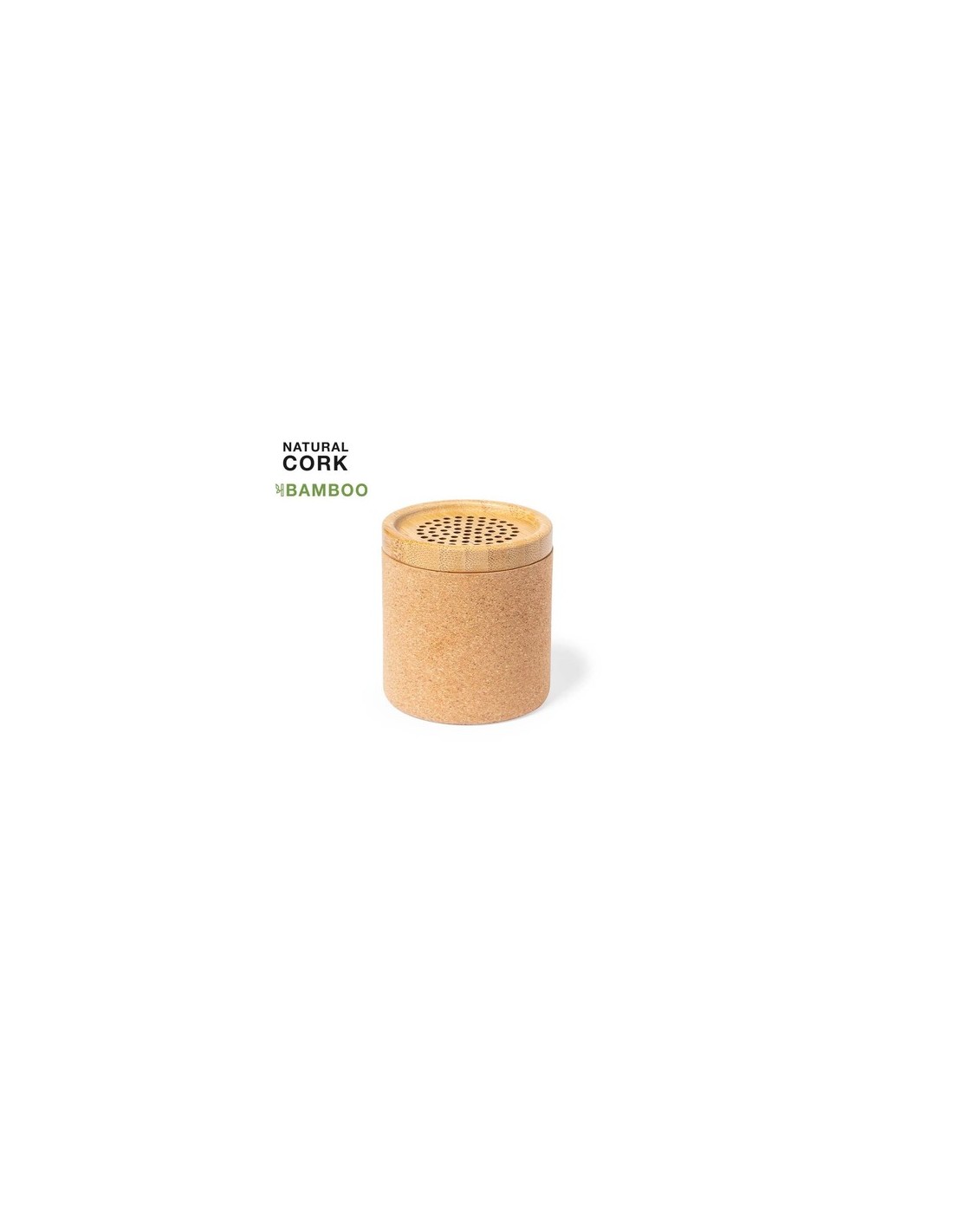 Altavoz Bluetooth de tamaño compacto y 3W de potencia. Combinación eco de cuerpo en corcho natural con rejilla de bambú. Batería de litio de 300mAh, con cable de carga Tipo C incluido. Presentado en caja individual de diseño kraft, con manual de instrucciones en español e inglés. Conexión Bluetooth. Potencia Sonido 3W. Batería 300 mAh Composition : Corcho/ Bambú.