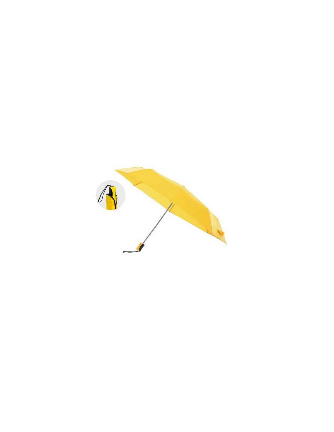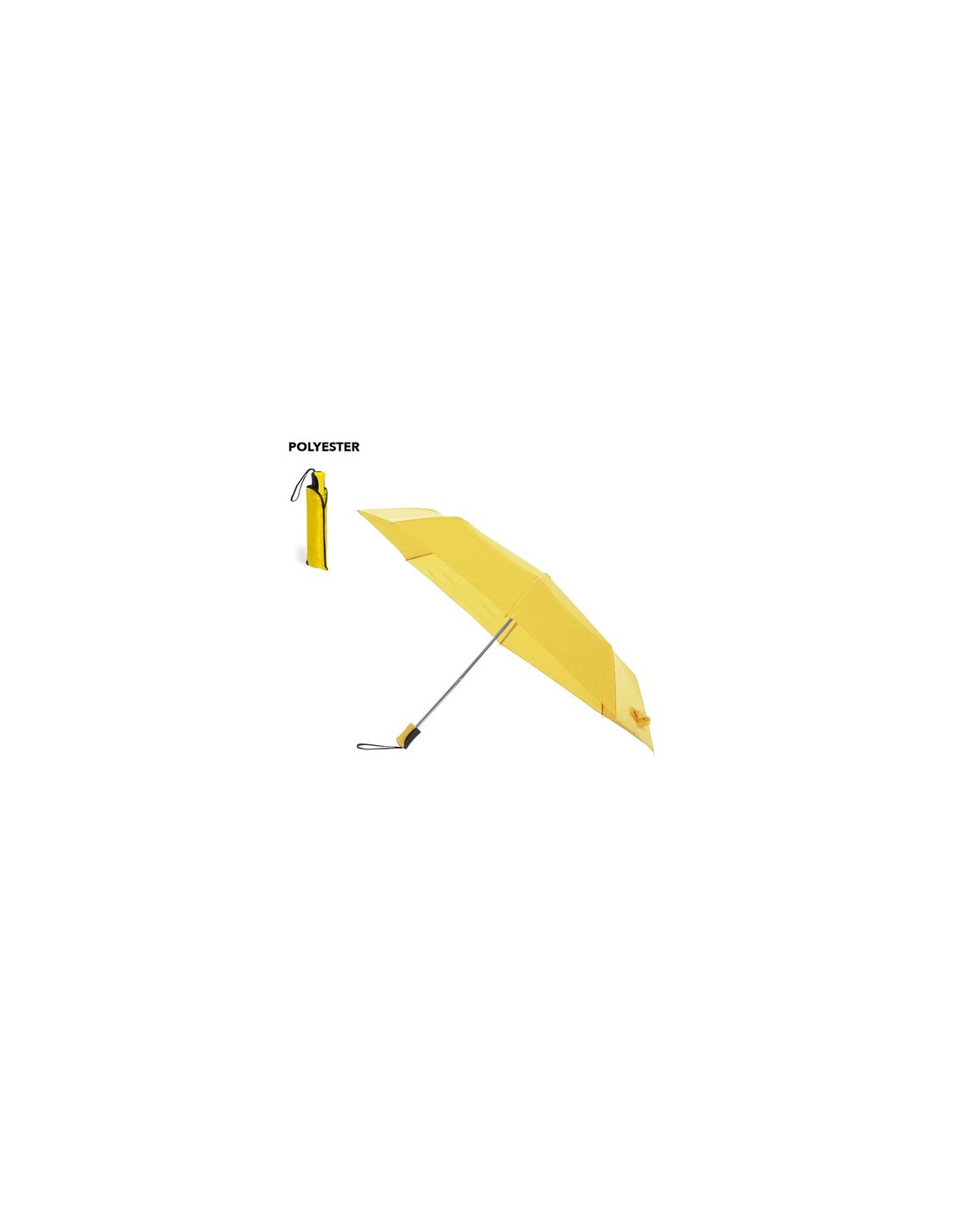 Paraguas plegable de 8 paneles de poliéster 190T. De apertura manual, con varillas metálicas en color plateado y cierre de velcro. Mango ergonómico con cinta de transporte y funda protectora a juego. Disponible en amplia gama de colores. Presentado en bolsa individual reciclada. 21". Funda Poliéster Composition : Poliéster 190T. Varillas Metal.