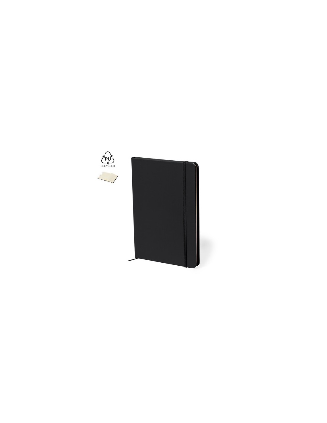Bloc de notas con tapas rígidas fabricadas en polipiel reciclada en distintos colores. Interior con 100 hojas de disposición a una raya. Incluye elástico de cierre del mismo color. Con distintivo Polipiel Reciclada. Presentado en bolsa individual reciclada.La polipiel destaca por su resistencia y elasticidad. Este material reciclado y reciclable es una opción sostenible que rescata las fibras desechadas en los procesos de fabricación, minimizando así el desperdicio de material y contribuyendo a su vez a reducir el impacto ambiental, manteniendo a la vez sus propiedades originales. Portada Rígida. 100 Hojas Composition : Polipiel Reciclada.