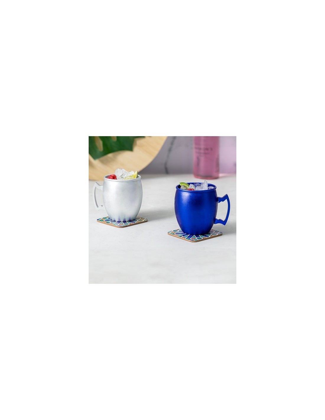 Taza de 540 ml de capacidad fabricada en aluminio. Con innovador diseño de asa y disponible en variada gama de colores metalizados. Presentada en atractiva caja individual de diseño kraft. 540 ml Composition : Aluminio.