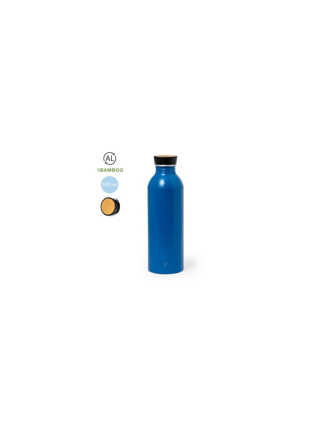 Bidón de 550 ml de capacidad. Fabricado en elegante y sostenible aluminio reciclado. De acabado satinado, incluye original tapón a rosca con detalle de bambú y libre de BPA. Con distintivo Aluminio Reciclado. Presentado en caja de diseño kraft y en bolsa individual reciclada.El aluminio reciclado es un material con posibilidades de reciclaje casi infinitas, sin perder sus propiedades originales y consumiendo menos energía en este proceso. 550 ml Composition : Aluminio Reciclado/ Bambú.