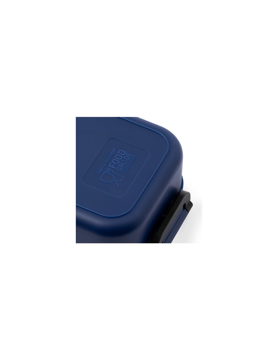Fiambrera con exterior en acabado mate, fabricada en PP reciclado libre de BPA. De 900ml de capacidad y tapa hermética con cierres de seguridad. Dispone de Certificación Food Grade, garantizando la seguridad cuando los alimentos entran en contacto con el material usado para fabricar el producto. Disponible en variada gamas de colores. Presentada en bolsa individual reciclada.El PP reciclado es un plástico reciclado y altamente reciclable, de gran resistencia y apto para multitud de aplicaciones. 900 ml. Cierre Seguridad Composition : PP Reciclado.