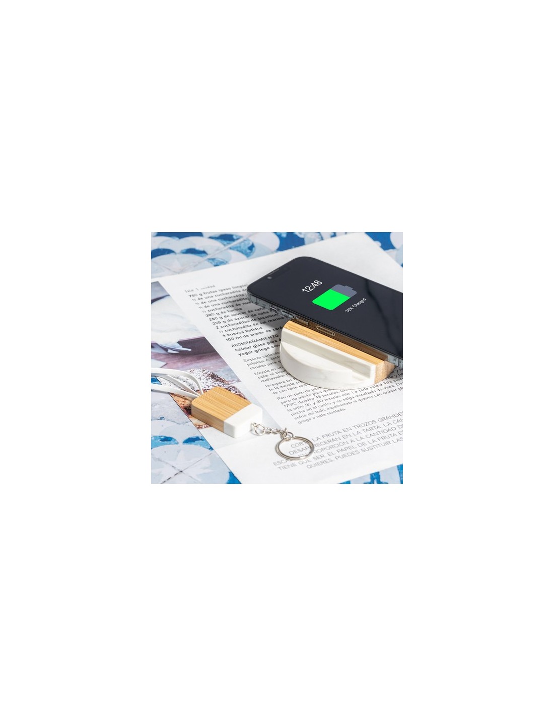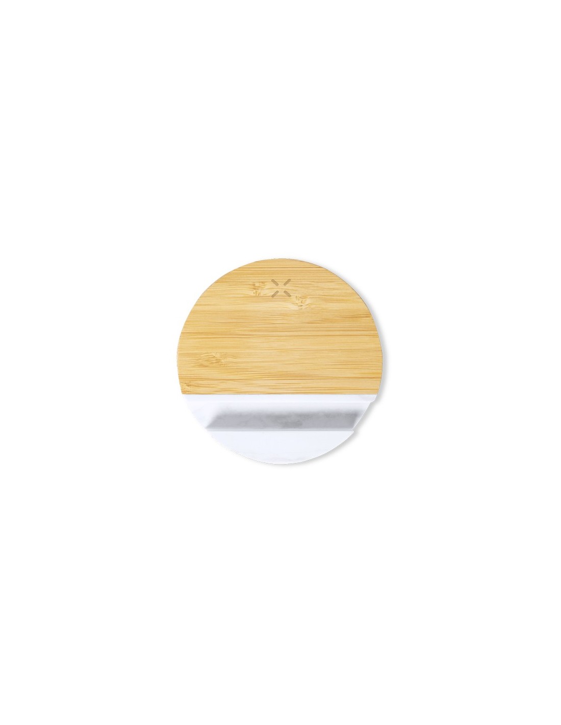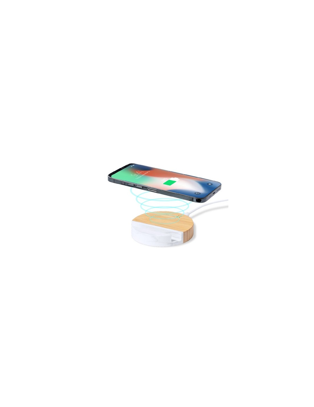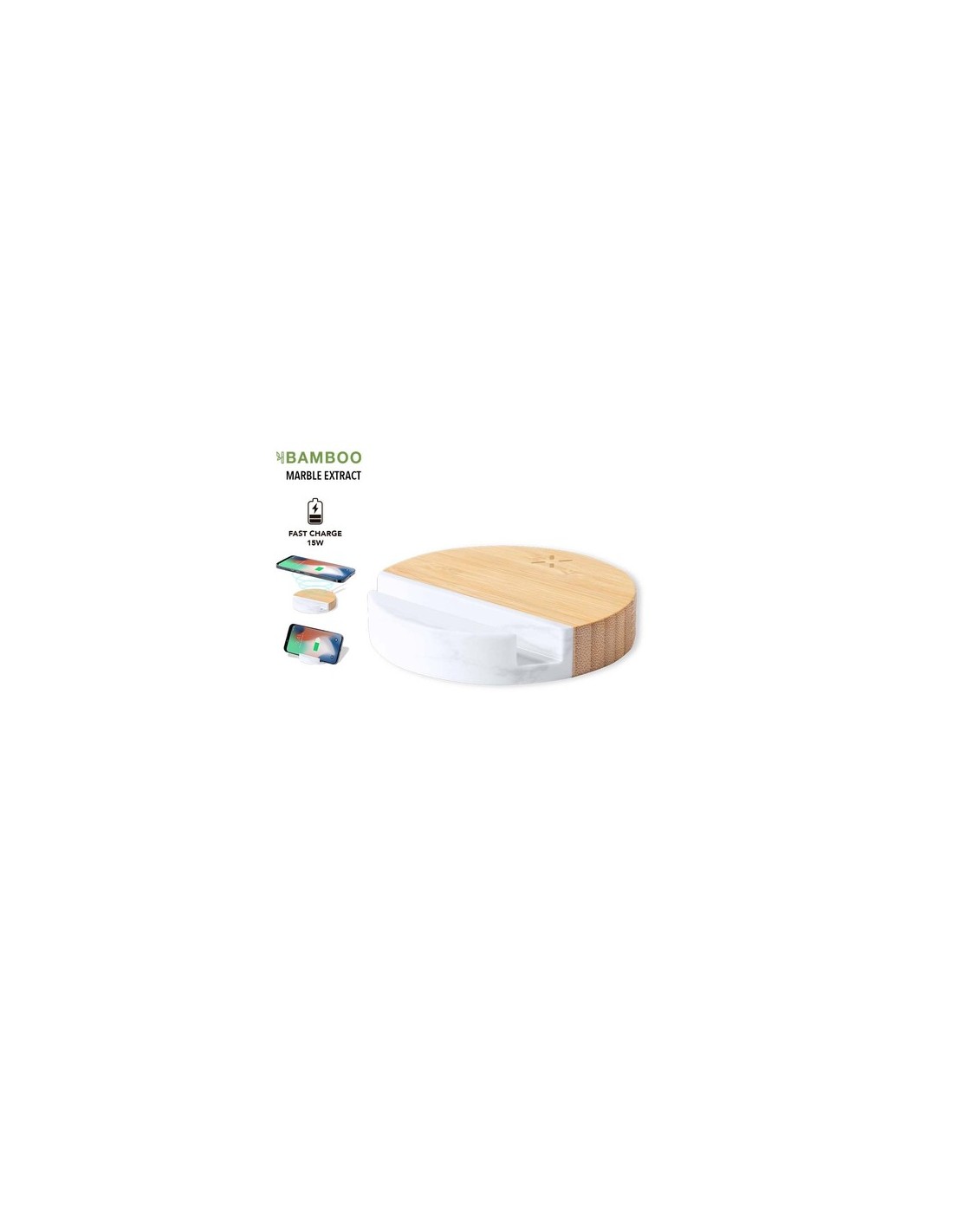 Cargador inalámbrico 15W con soporte para smartphone integrado. De diseño circular y fabricado en materiales naturales: base en bambú, con soporte en extracto de mármol. Compatible con dispositivos equipados con tecnología de carga inalámbrica Qi. Incluye cable cargador Tipo C y manual de instrucciones en español e inglés. Presentado en caja individual de diseño kraft. Fabricado conforme a los estándares RoHS y en cumplimiento con los siguientes requisitos de seguridad: Sistema de protección contra sobrecalentamiento. Sistema de protección contra sobrecarga. Sistema de bloqueo para evitar cortocircuitos. Inalámbrico 15W Composition : Bambú/ Extracto de Mármol.