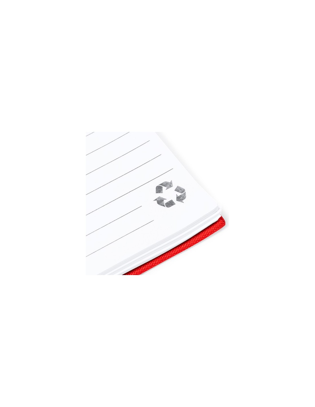 Libreta de anillas A5 con tapas duras en resistente material RPET 300D. Interior con 100 hojas a una raya y 100% recicladas microperforadas. Incluye distintivo RPET en contraportada. Presentado en bolsa individual reciclada.El material RPET se elabora a partir de plástico reciclado, para así fomentar la reutilización de residuos plásticos y ayudar a la sostenibilidad del planeta. Portada Rígida. 100 Hojas Composition : Poliéster 300D RPET.