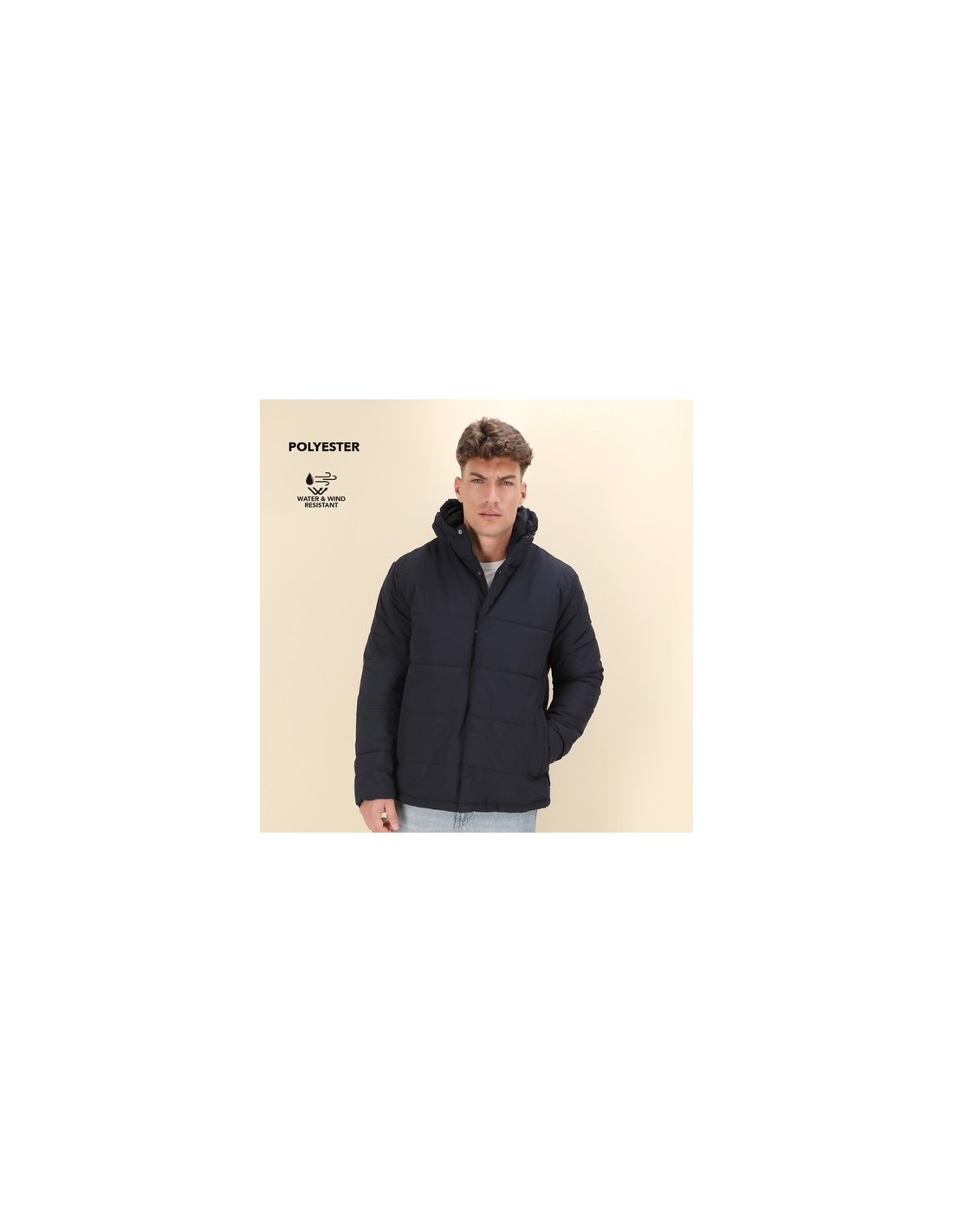 Chaqueta tipo parka, con capucha, en cálido y suave material 100% poliéster. En material ligero, resistente al viento y al agua. Diseño de elegante construcción horizontal y acolchado, con capucha fija integrada. Doble cierre frontal de cremallera y corchetes. Bolsillos laterales con tiradores a juego y cordón ajustable en dobladillo. Disponible en tallas XS, S, M, L, XL, XXL. Resistente al Viento y al Agua Composition : 100% Poliéster.