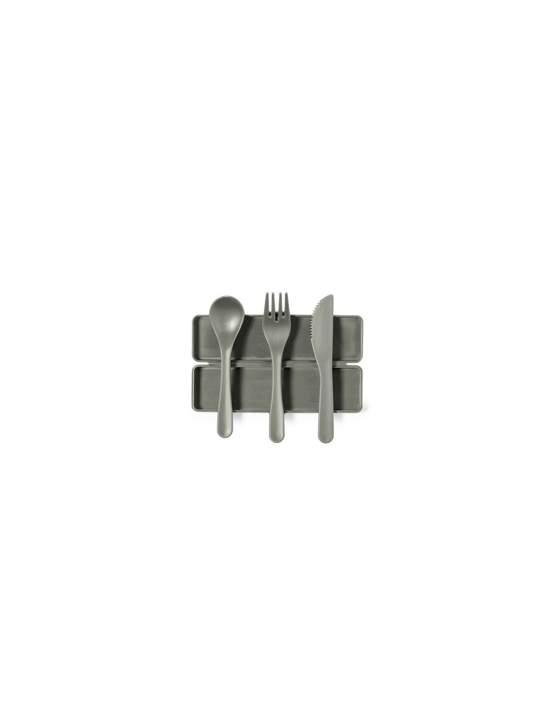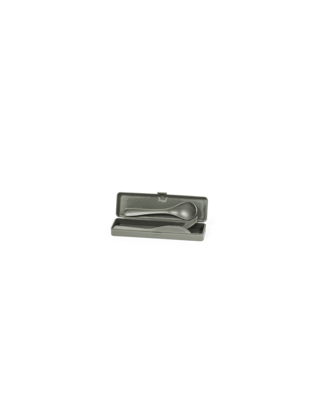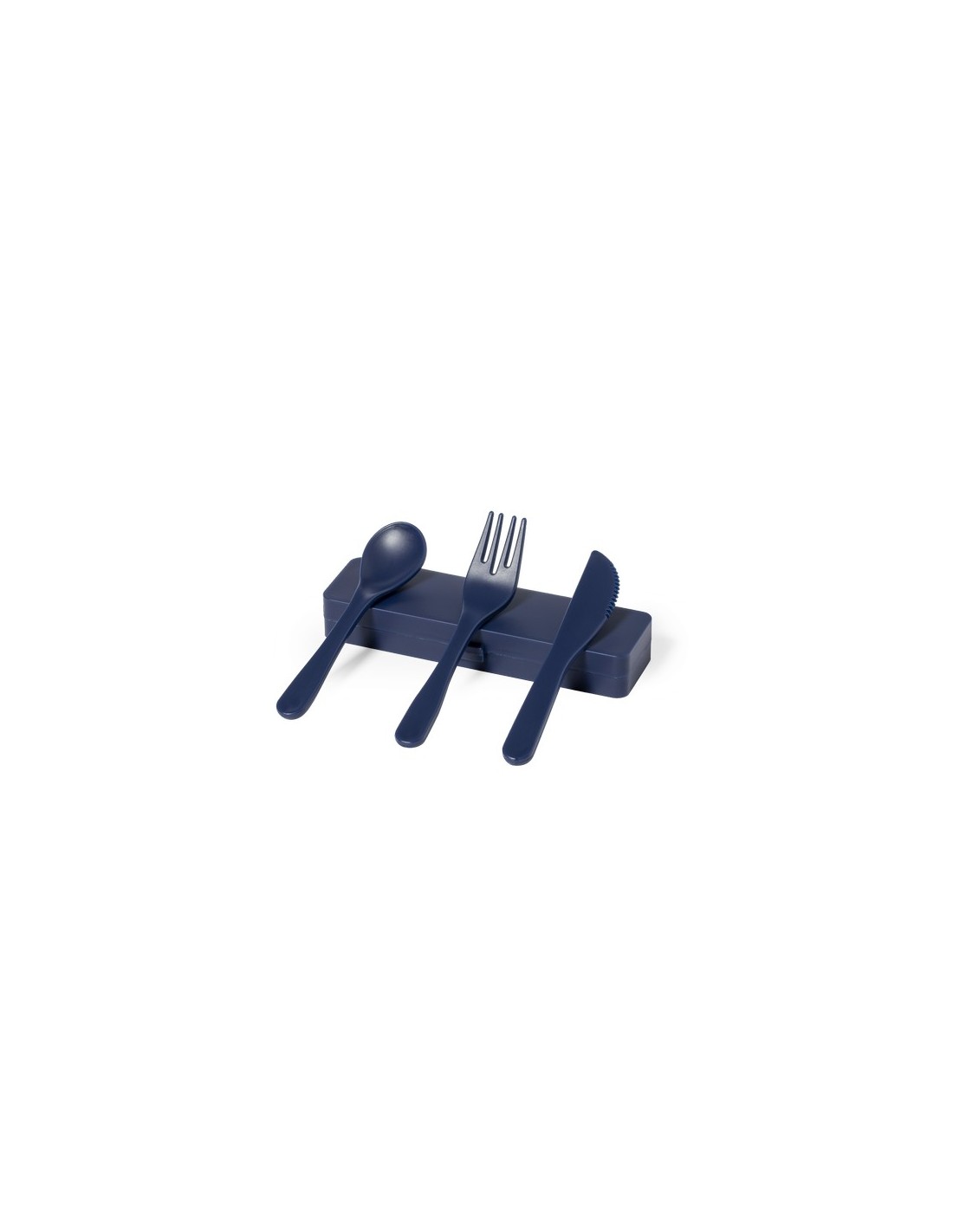 Set de cubiertos fabricados en PP reciclado libre de BPA, con estuche de presentación a juego. Incluye cuchara, tenedor y cuchillo. Dispone de Certificación Food Grade, garantizando la seguridad cuando los alimentos entran en contacto con el material usado para fabricar el producto. Estuche esterior y cubiertos en acabado mate disponibles en variada gamas de colores. Presentados en bolsa individual reciclada.El PP reciclado es un plástico reciclado y altamente reciclable, de gran resistencia y apto para multitud de aplicaciones. 3 Piezas Composition : PP Reciclado.