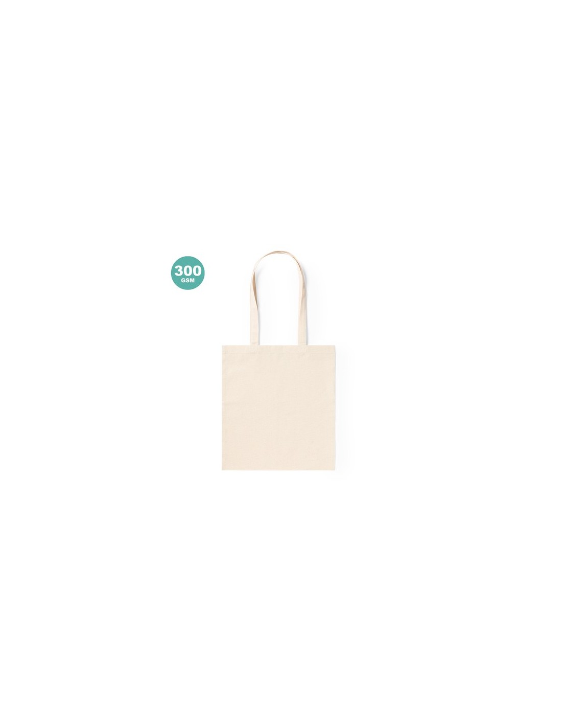 Bolsa fabricada en algodón 100%, de acabado natural y en gramaje extra de 300g/m2. De acabado cosido y asas largas reforzadas (70 x 2,5 cm). Resistencia hasta 10 kg de peso. Composition : 100% Algodón 300 g/ m2.