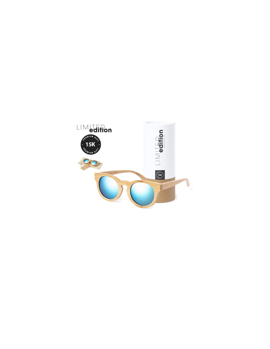 Gafas de sol de diseño exclusivo Limited Edition. Montura y patillas fabricadas en bambú, de elegante diseño y con lentes efecto espejo. Incluida bolsita de transporte con cierre de cordón. Protección UV 400.Presentación en estuche Limited Edition Experience, de diseño único y protegido por derechos de propiedad industrial. Incluida tarjeta en cartón reciclado con descripción Limited Edition.De la perfecta combinación entre exclusividad y diseño nace Limited Edition, una colección especial de ideas promocionales de edición limitada. Un nuevo concepto, inspirado en la fusión de artículos premium con las últimas tendencias, en tiradas de unidades limitadas, y ofreciendo una experiencia de regalo única, exclusiva e inolvidable. Lentes Efecto Espejo. Protección UV400. Funda Poliéster Composition : Bambú.