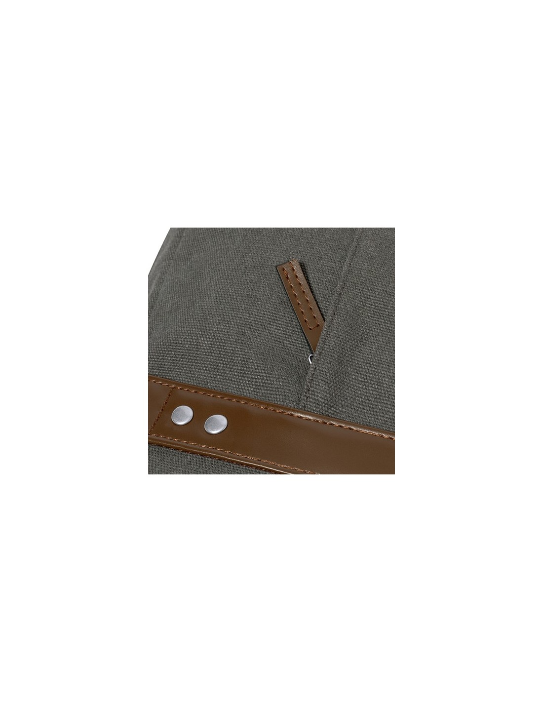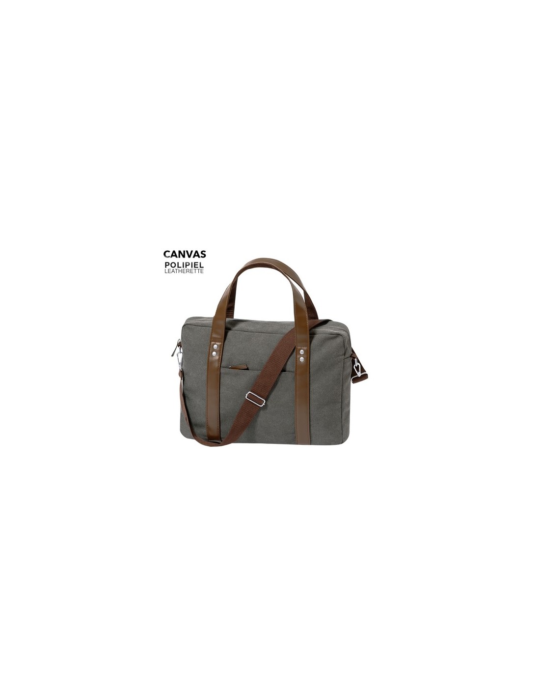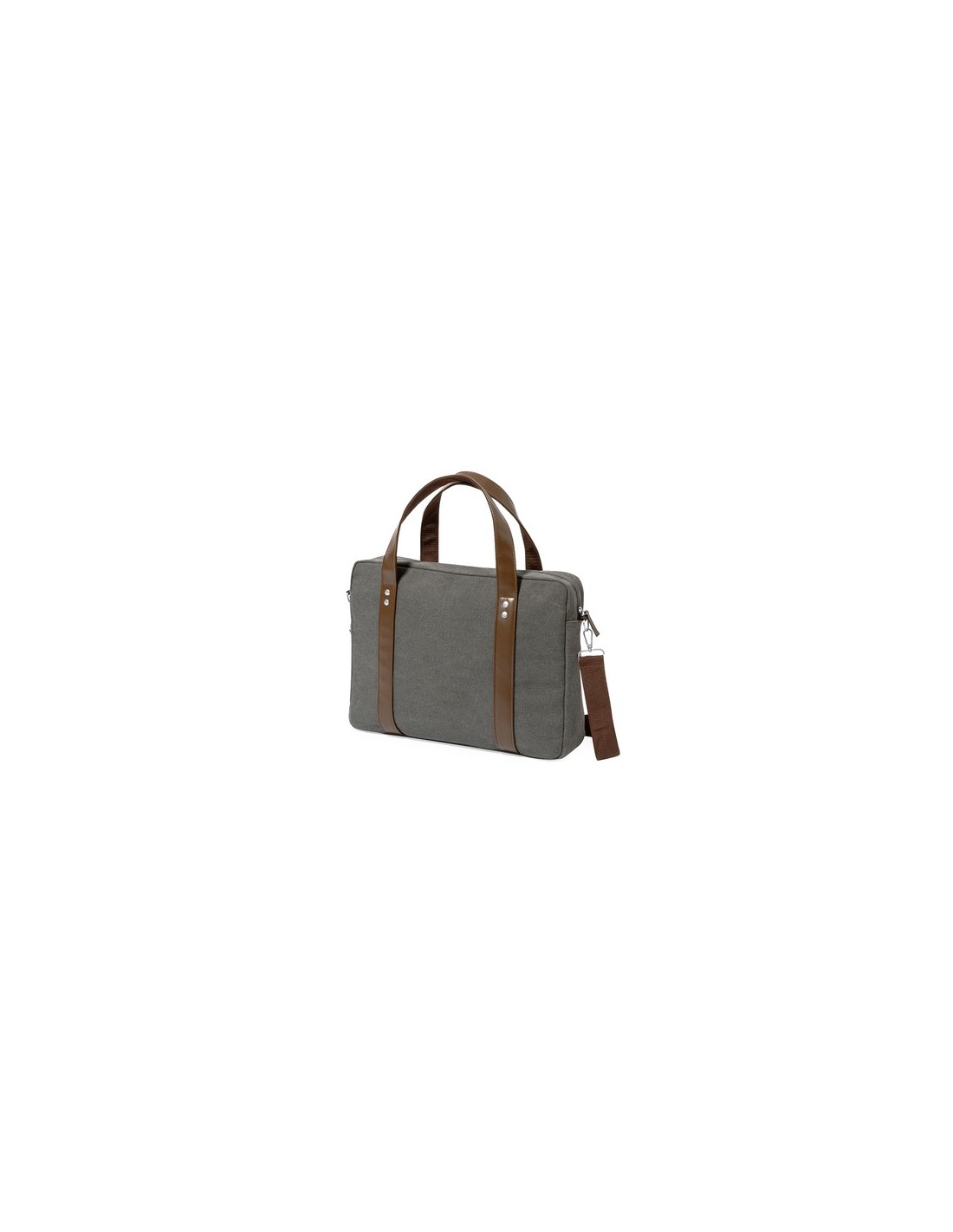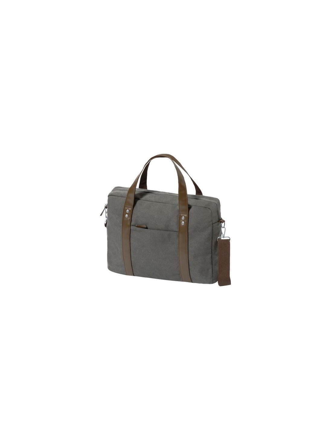 Portadocumentos bandolera de diseño atemporal, fabricado en resistente canvas de 475 g/m2, color gris, con cintas en polipiel y práctica cinta para hombro ajustable. Interior acolchado con compartimento ordenador portátil de hasta 15 pulgadas. Incluye práctico bolsillo en el exterior. Presentado en bolsa individual reciclada. Acolchado. Bolsillo Acolchado para Portátil Composition : Canvas/ Polipiel.