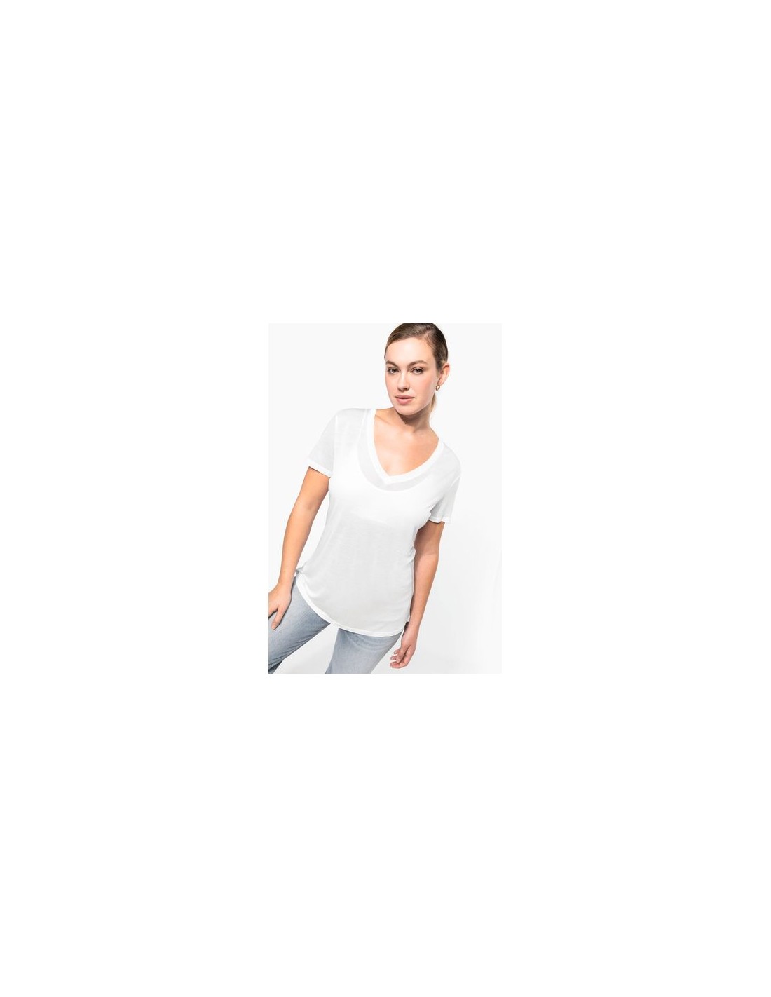 El tejido Lyocell TENCEL™ tiene una superficie muy lisa y suave que se ajusta perfectamente. Esta camiseta es transpirable, ligera y cómoda. Corte recto a la moda. 100% Lyocell TENCEL™. Corte recto. Costuras laterales.Lavado con enzimas. Cuello de pico en el material principal. Tira cubrecosturas del material principal en la parte interior del cuello. Dobladillo con doble pespunte en el bajo de las mangas y el bajo de la prenda.