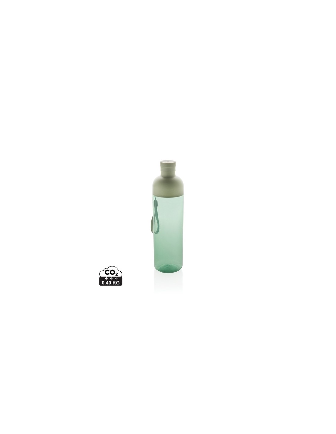 Elimina el uso de botellas de plástico con esta botella de agua antigoteo. Con su diseño fresco, la botella no sólo es fácil de usar sino también hermosa a la vista. El diseño de cuerpo dividido facilita la limpieza y es excelente si deseas agregar cubitos de hielo a tu botella. En el cuerpo hay una correa adjunta para facilitar su transporte. El 2% de las ganancias de cada producto vendido de Impact Collection se donará a Water.org. Lavar a mano únicamente. Este producto es sólo para bebidas frías. Contenido reciclado total: 96% basado en el peso total del artículo. Sin BPA. Capacidad 600ml. Incluye embalaje de regalo kraft certificado FSC®. Material : rPET, Polipropileno reciclado Recycled Content Percent : 96 Sin materiales Bisphenol A, Conforme directiva seguridad Alimentos 1935/2004/EC & 2020/1245, Conforme legislación alimentos Alemania, certificado de Recycled Claim Standard Packaging : Bolsa de papel y caja regalo All print codes : Pad Print Drinkware,Doming,Digital round 360-2,SilkScreen Round - Print code default : Tampografía - parte frontal/alta del artículo - 25 x 10 mm - max color : 5 Social Audits : BSCI Total CO2 emissions : 0,4.