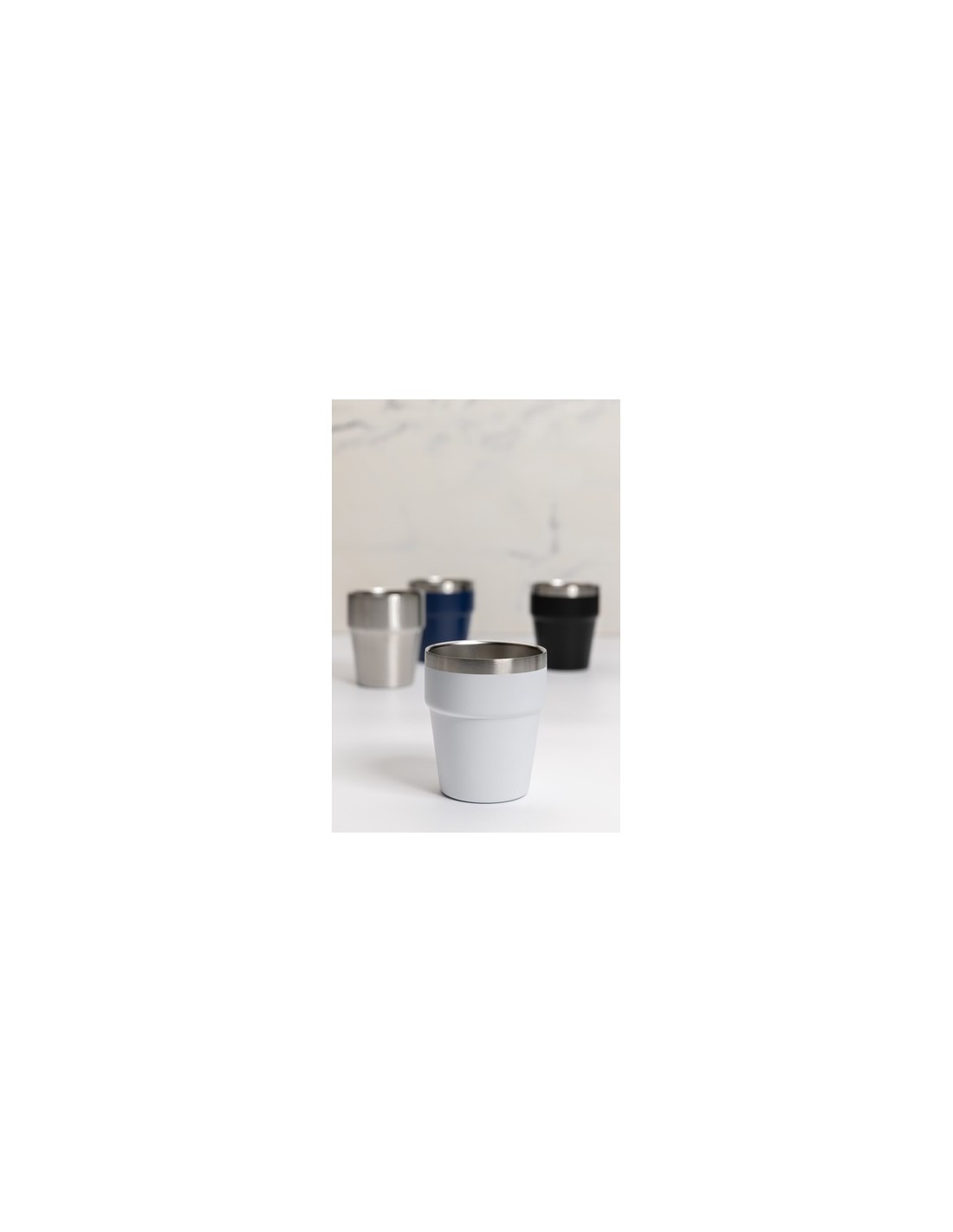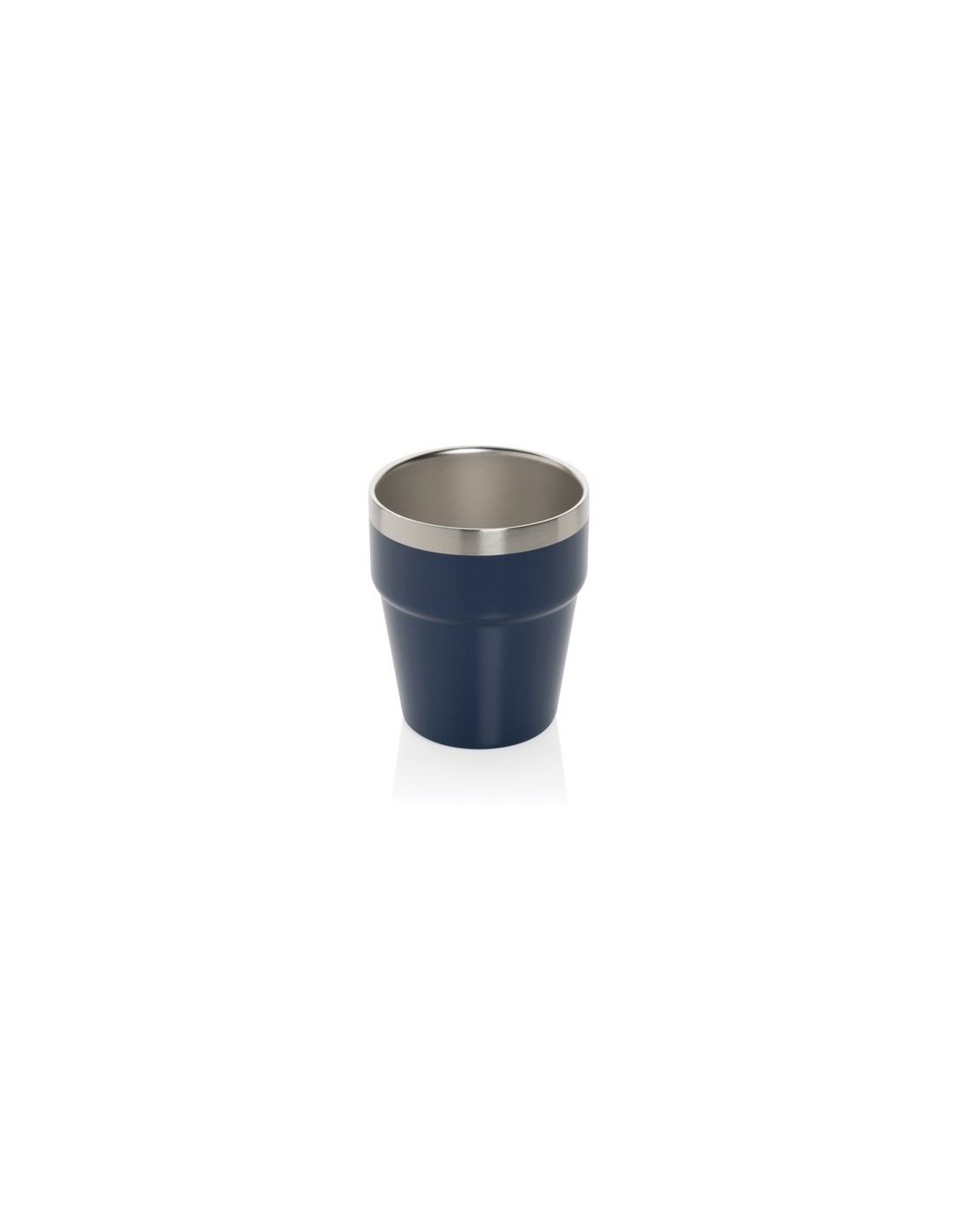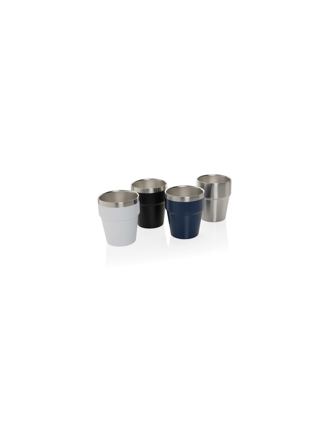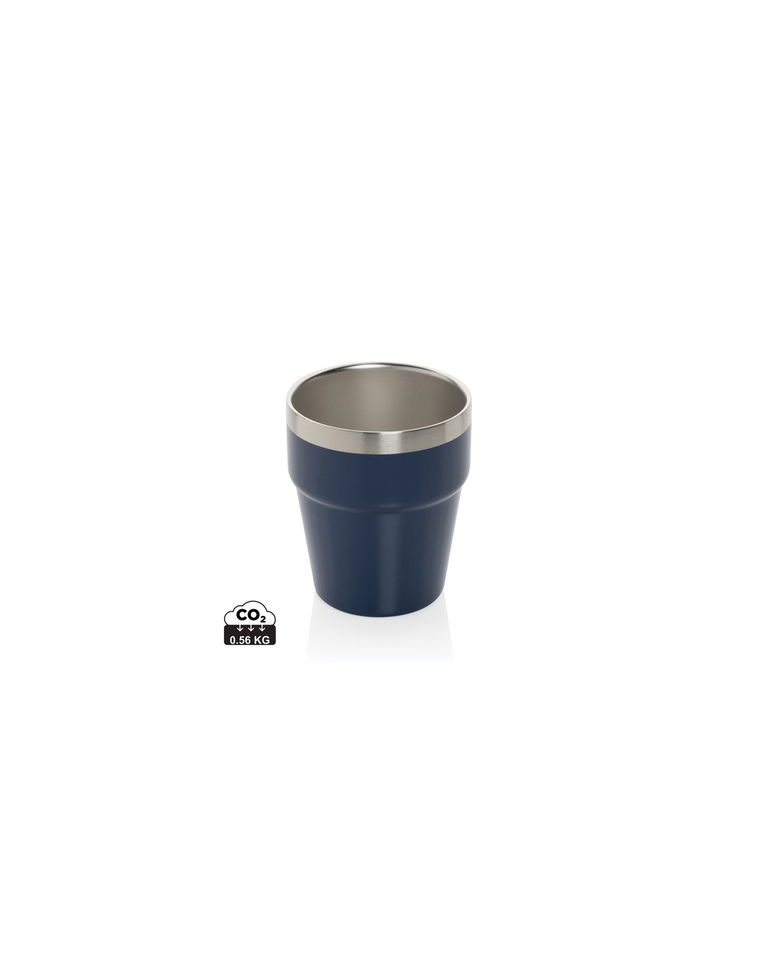 Taza de acero de doble pared, perfecta para las cafeteras. Fabricado 100% en acero certificado RCS. La certificación RCS garantiza una cadena de suministro de materiales reciclados completamente certificada. Lavar a mano únicamente. Contenido reciclado total: 100% basado en el peso total del artículo. Sin BPA. Capacidad 300ml. Incluye embalaje de regalo kraft certificado FSC®. Material : Acero inoxidable reciclado Recycled Content Percent : 100 Sin materiales Bisphenol A, Conforme directiva seguridad Alimentos 1935/2004/EC & 2020/1245, Conforme legislación alimentos Alemania, certificado de Recycled Claim Standard Packaging : Bolsa de papel y caja regalo All print codes : Pad Print Drinkware,Laser Engraving 3 - Print code default : Tampografía - parte frontal y baja del artículo - 20 x 40 mm - max color : 5 Social Audits : BSCI Total CO2 emissions : 0,56.
