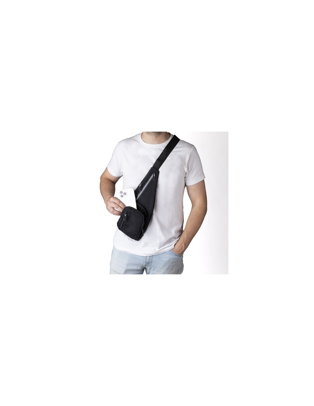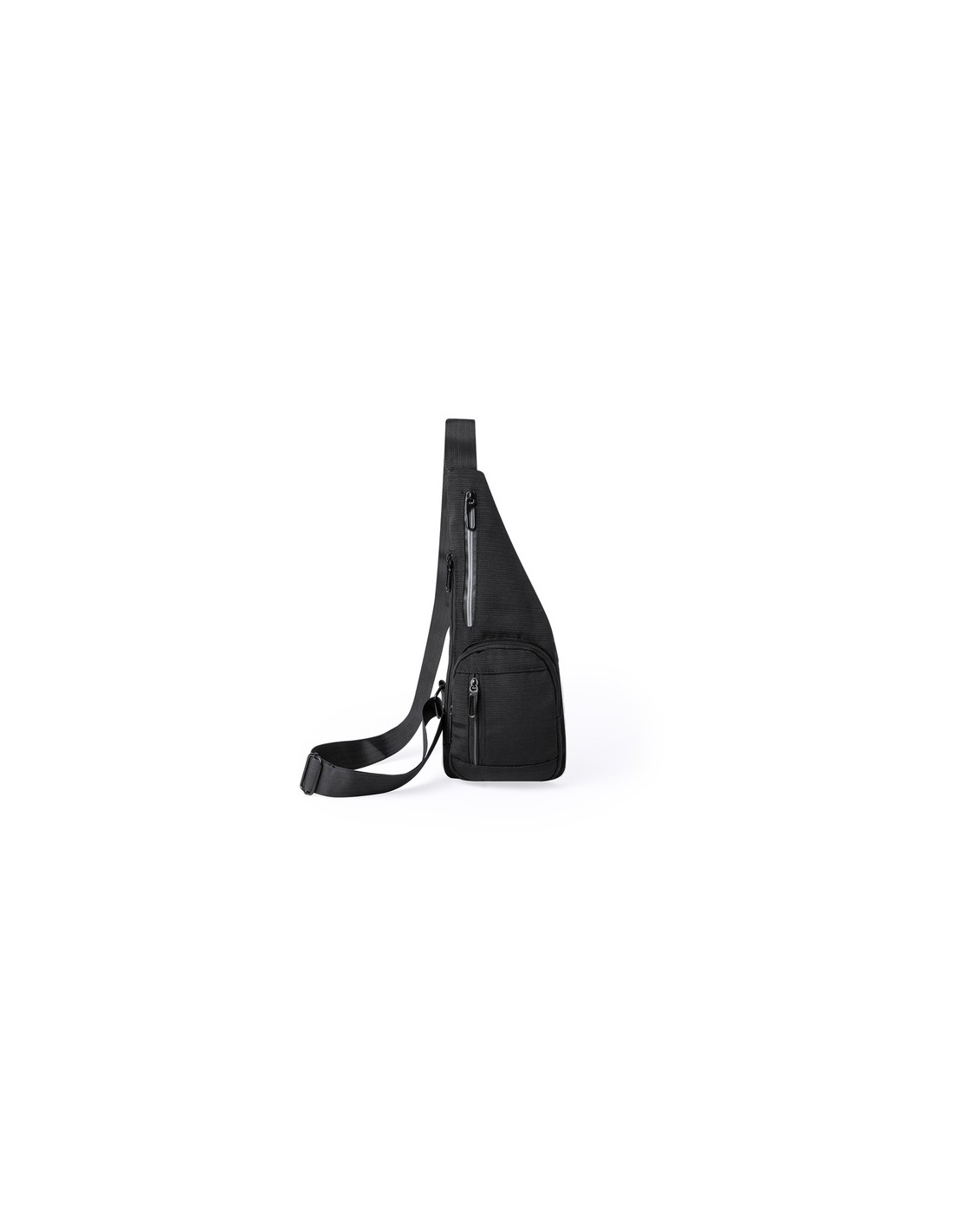 Bandolera confeccionada en poliéster 300D, ofrece múltiples bolsillos para una organización efectiva. Dos bolsillos principales se encuentran en la zona frontal y lateral, junto con dos bolsillos adicionales en la parte frontal y trasera. Destaca por una banda reflectante en el bolsillo central para mejorar la visibilidad. Se presenta de manera individual en una bolsa reciclada. Acolchada. Reflectante Composition : Poliéster.