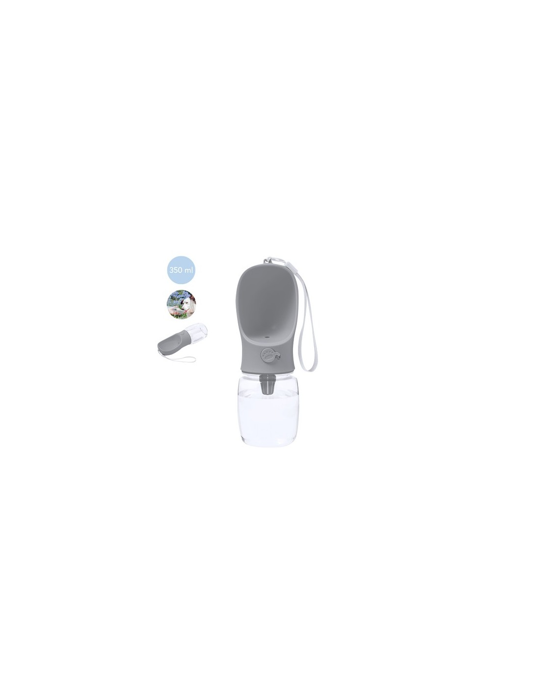 Práctico bidón para mascotas de 350 ml, fabricado en resistente combinación de ABS y PET. Incluye depósito de 350 ml y original dosificador para llenar bebedero con la cantidad de líquido deseada. Con práctica correa para fácil transporte y presentado individualmente en caja de diseño kraft. 350 ml Composition : ABS/ PET.