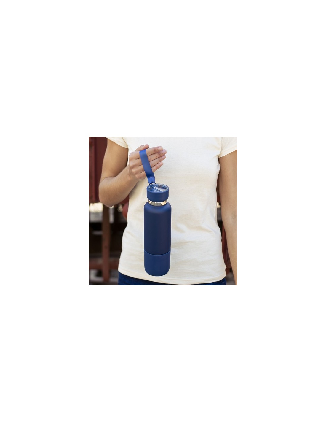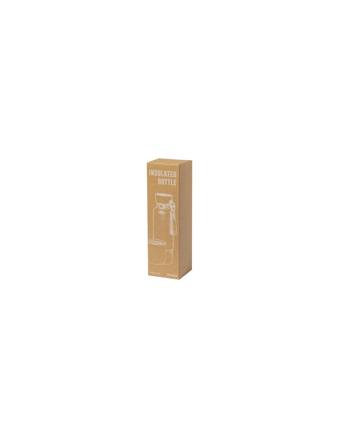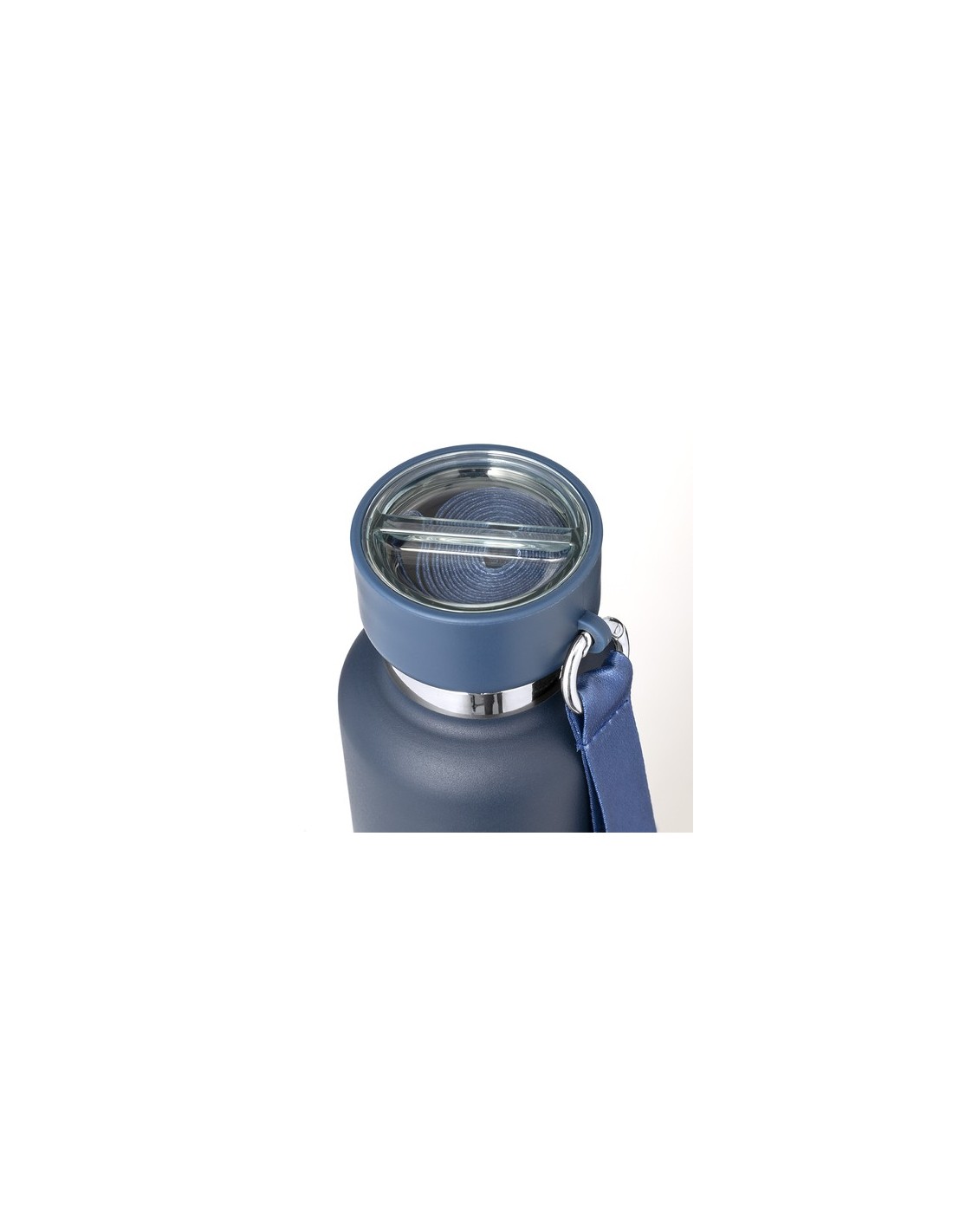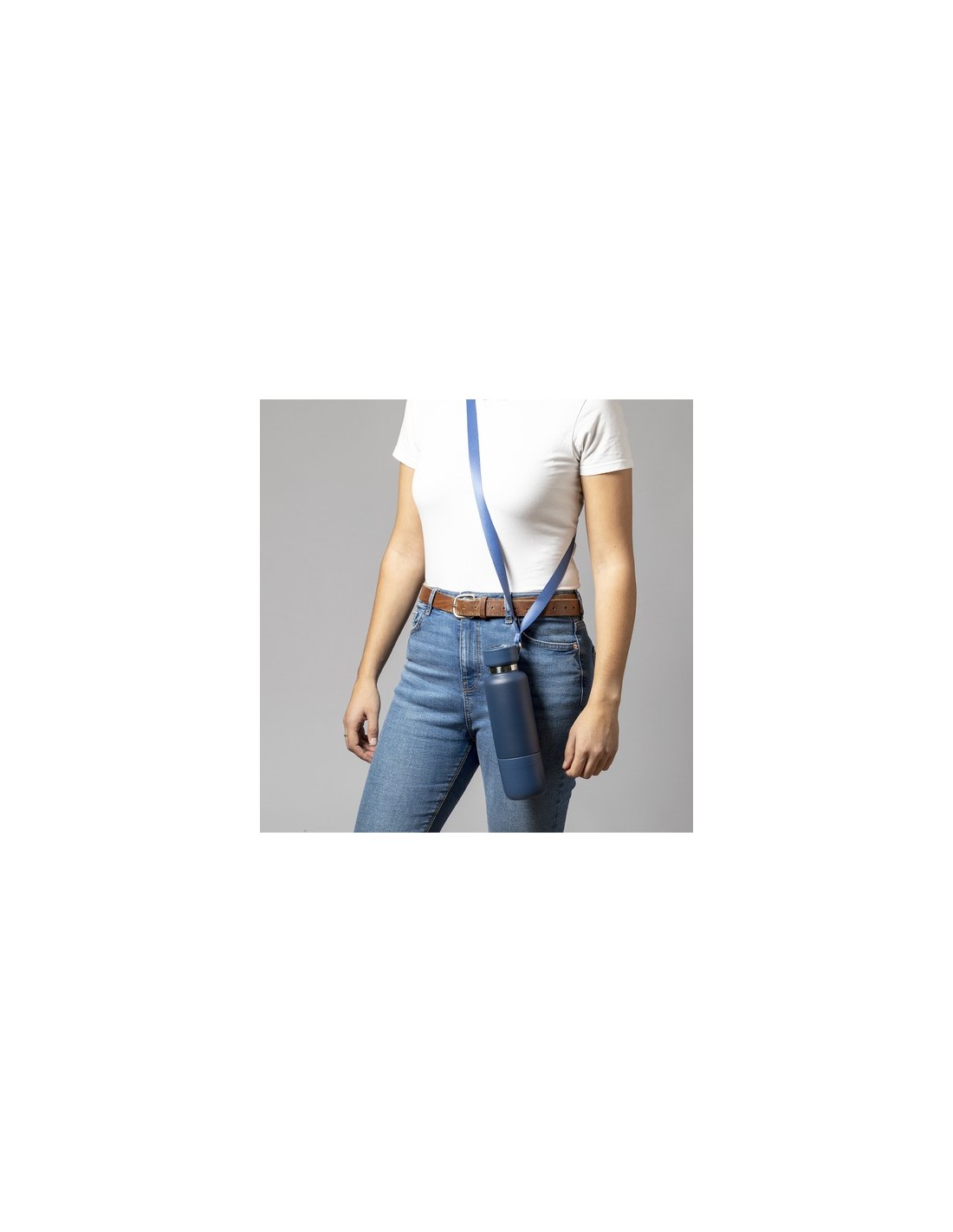 Original bidón térmico fabricado en acero inox de 550 ml de capacidad. Su tapón de rosca asegura un sellado perfecto, incorporando un compartimento con dos cuerdas intercambiables: una elegante pulsera y un versátil lanyard con aro mosquetón para facilitar el transporte. La base alberga un vaso de 300 ml con acoplamiento de rosca del mismo color, fabricado en resistente PP. Disponible en variados colores mate. Presentado en caja individual diseño kraft. 500 ml. Vaso PP 300 ml. Lanyard Incluido Composition : Acero Inox.
